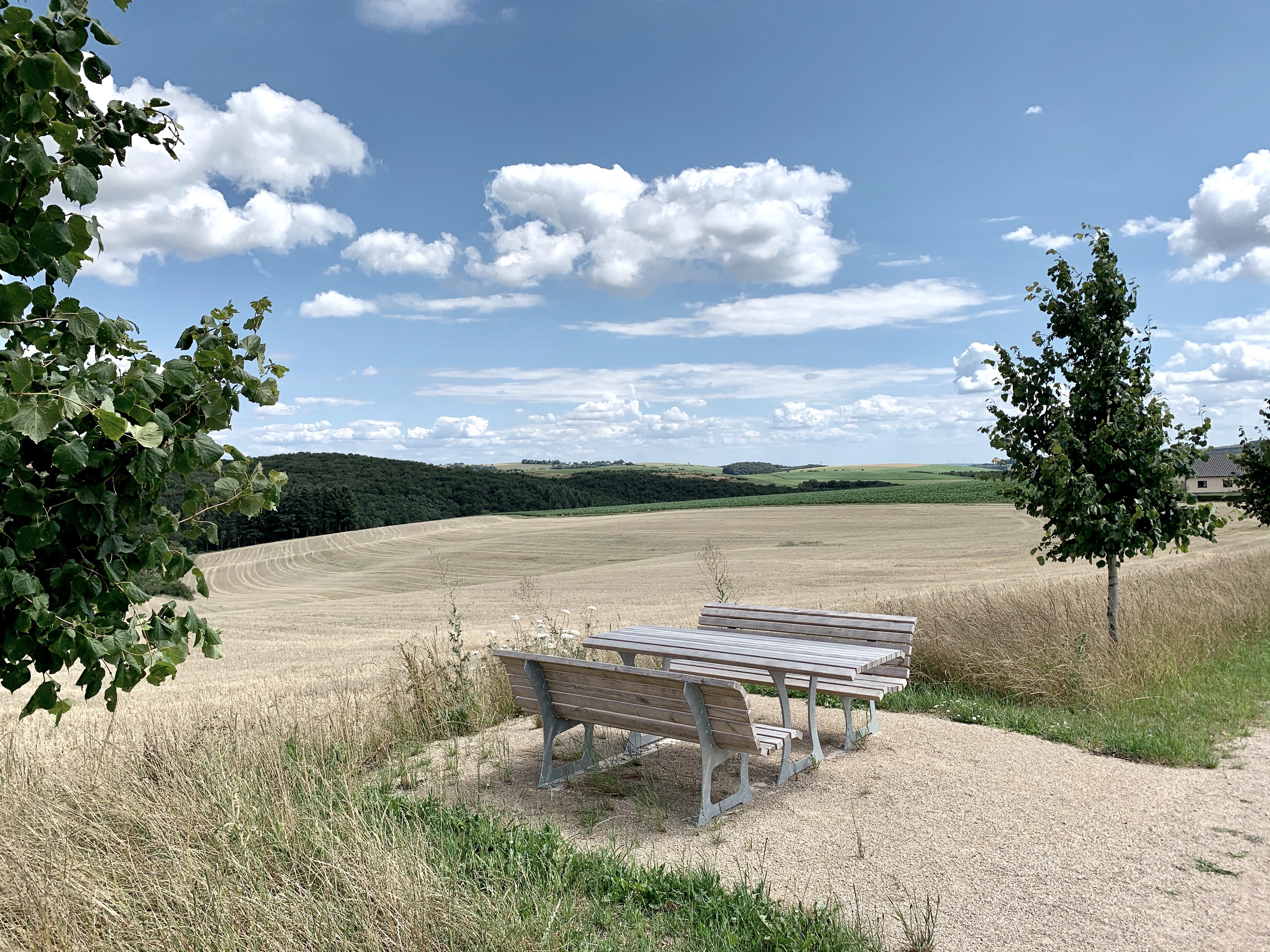 Weite Blicke in die Eifel-Landschaft, Wiesen und Felder soweit das Auge reicht, Rastplätze die zum Verweilen einladen – das alles prägt diesen 1,2 Kilometer langen Rundweg in Ammeldingen bei Neuerburg.