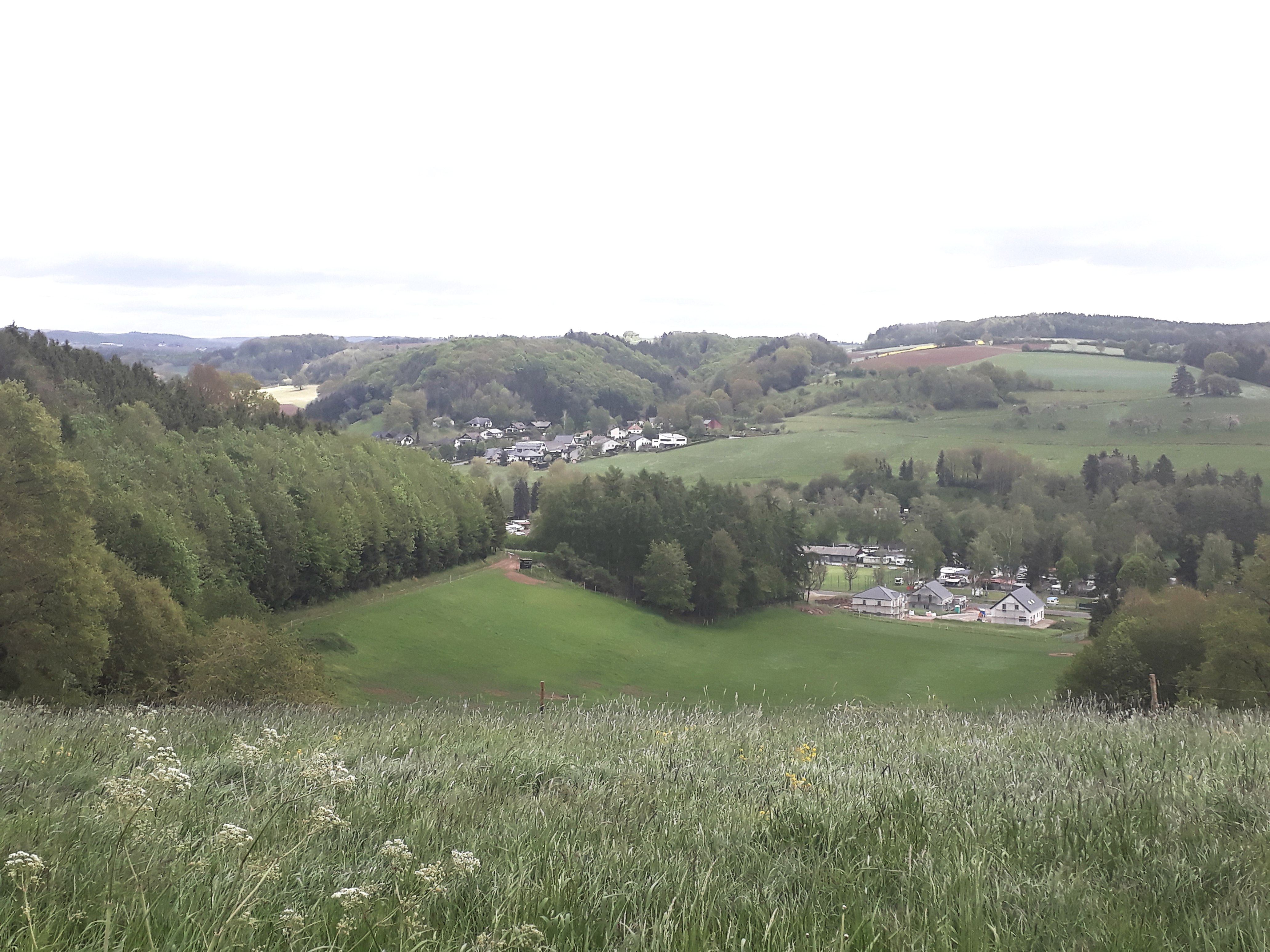 Unterwegs hat man tolle Ausblicke auf Streuobstwiesen und Ginsterheiden rund um den Äpfelberg. Ganz in der Ferne kann im Wald man sogar das Schloss Vianden in Luxemburg erkennen.