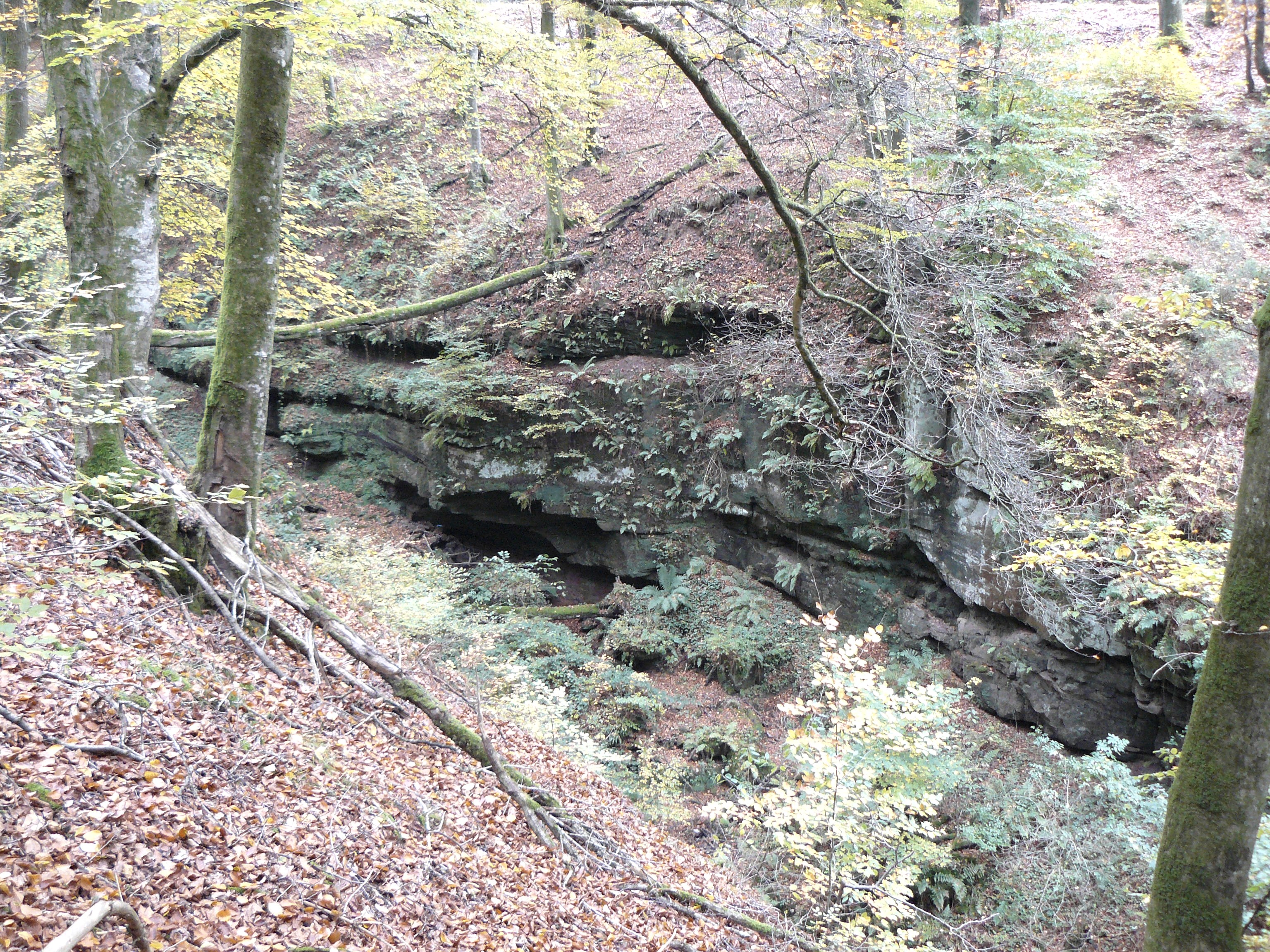 Auf diesem Weg erleben wir eine abwechslungsreiche Kulturlandschaft mit Waldrandgehölzen, Streuobstwiesen, Äckern und Weiden sowie kleinen Steingruben, die an die ortbildprägende Nutzung des lokalen Buntsandsteins erinnern.