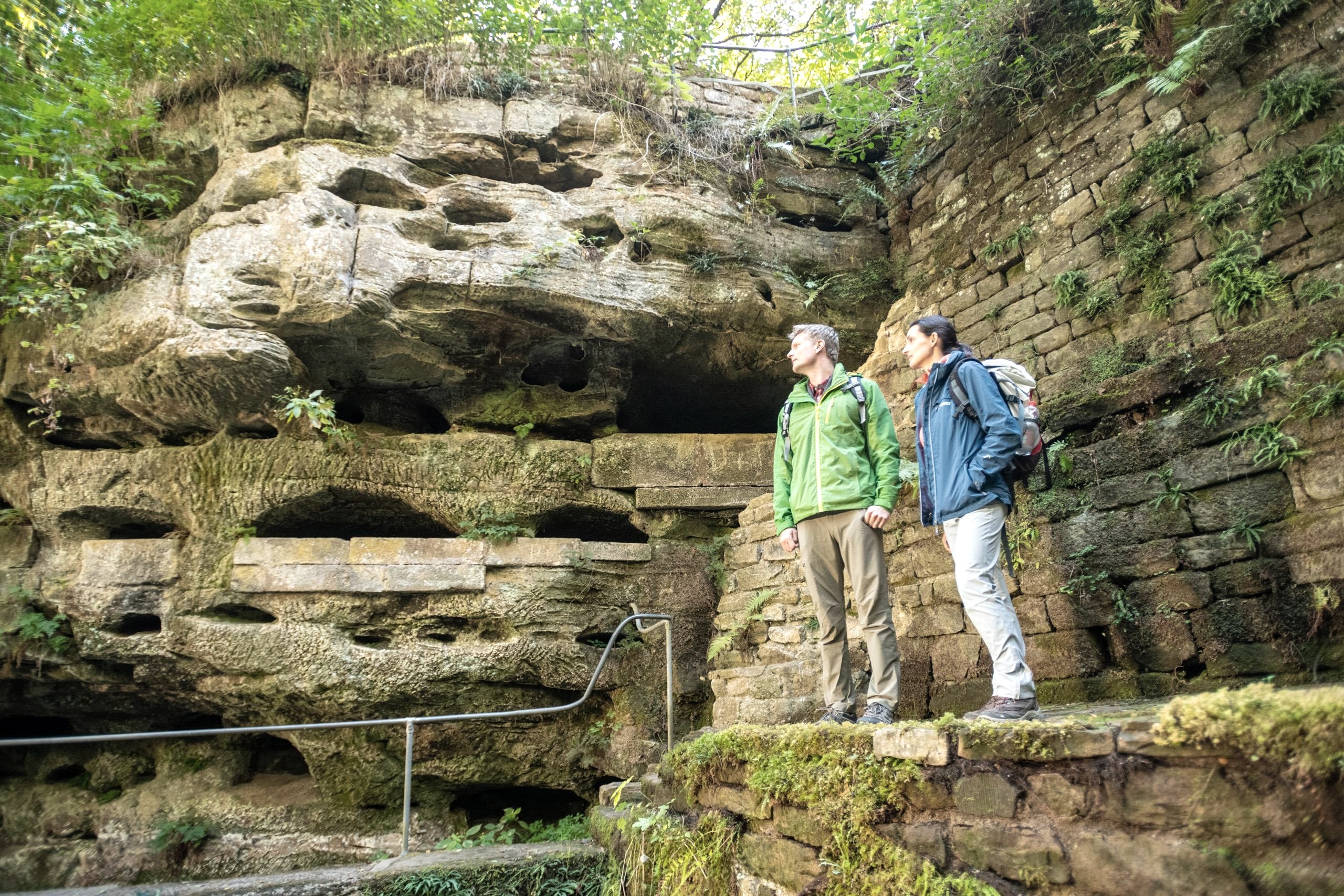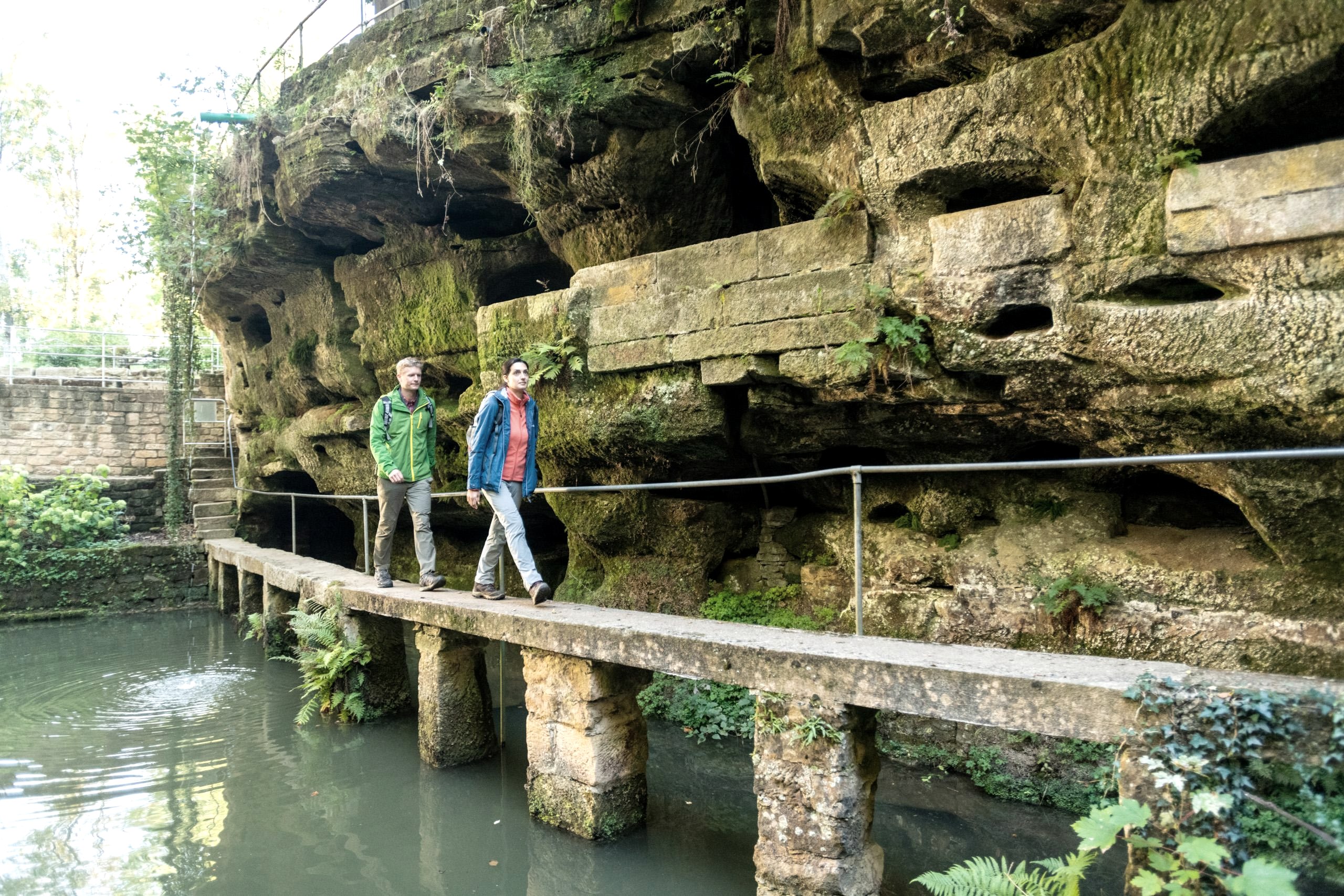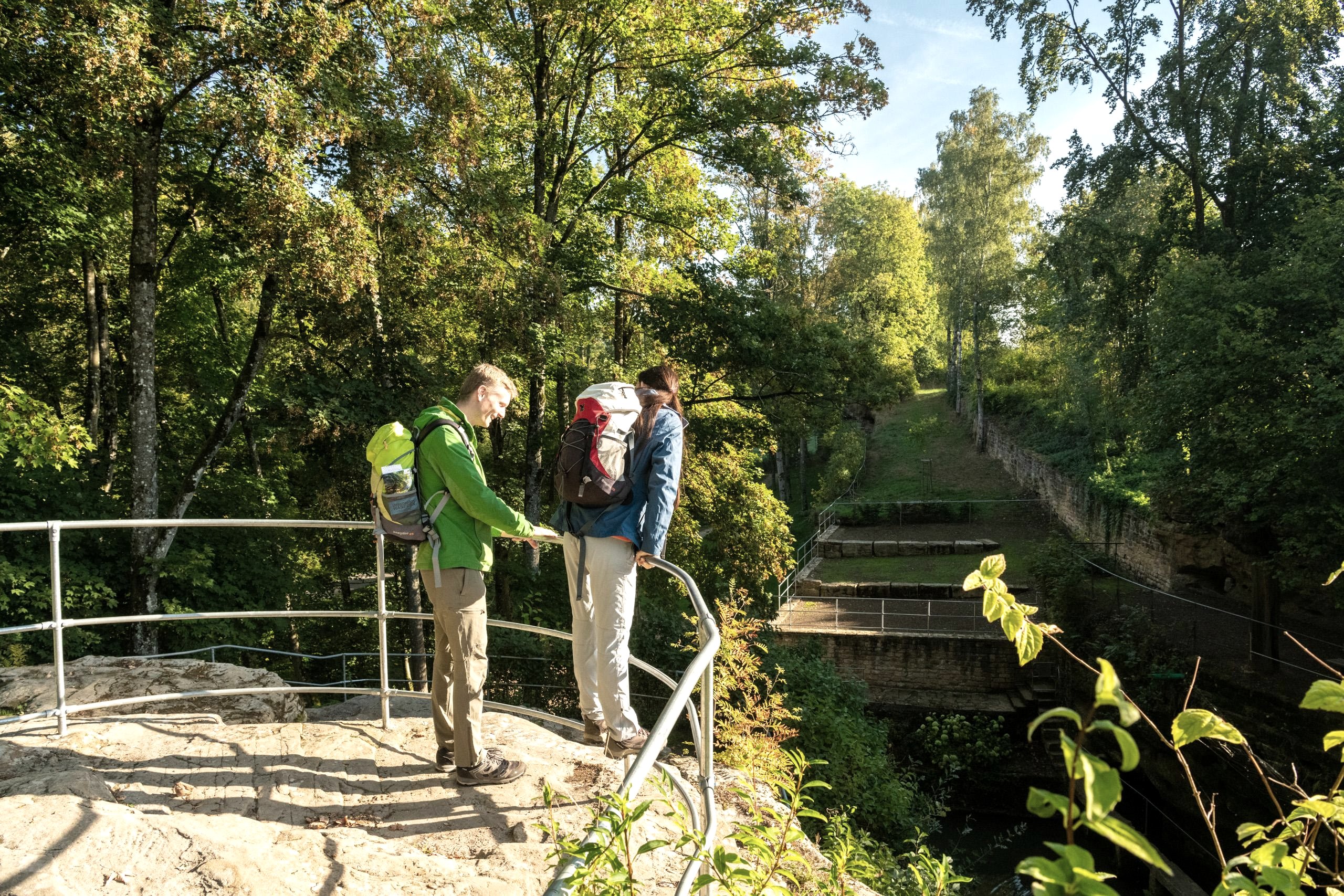 Romantisch und bizarr: Ein kleiner Weiher inmitten von Felswänden mit Nischen und Höhlen, gespeist durch das Wasser einer Quelle und umgeben von Terrassen, Bassins, Treppen und Brücken – diese ungewöhnliche, beeindruckende Anlage befindet sich am Eingang zum Gutenbachtal am Rand des Dorfes Ernzen.