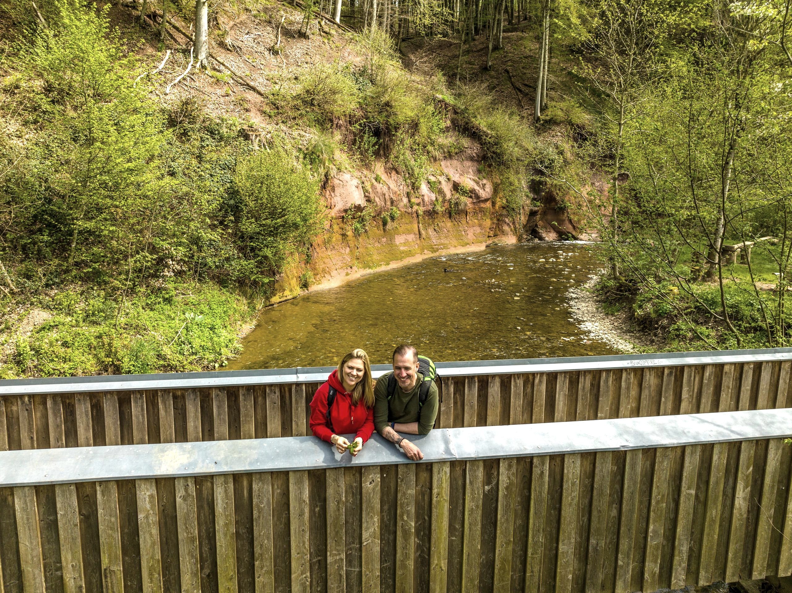 Am „Roten Puhl“ hat die Enz den mit Buchen bestandenen Hang in einer stattlichen Höhe angeschnitten. Hier steht in leuchtend orange-roten Farben das Gestein des mittleren Buntsandsteins aus dem Erdzeitalter der Trias an. Diese Ablagerungen in Fluss- und Deltabereichen sind ca. 220 Mio. Jahre alt.