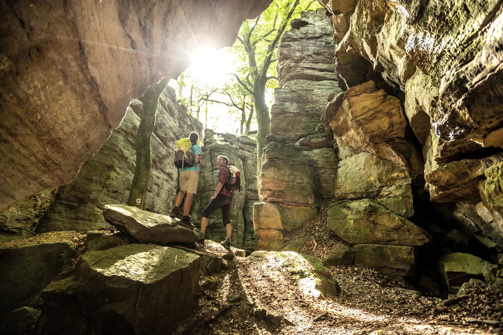 The trail winds through rock labyrinths and around rock bastions, leading to magnificent vantage points and over narrow footbridges, surprising you around every bend. Here you will find your adventurous kick, roam the spectacular Wolfsschluff and the mysterious "Sieweschloeff", explore the "Raiberhiel", climb the iron ladder to the eagle's eyrie at dizzy heights and test yourself in the climbing garden "Wanterbaach"!