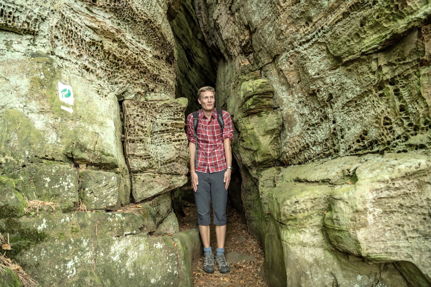 You should set off early, because the circular route is quite challenging. When the morning mist still hangs in the forest, the first tentative rays of sunlight filter through the branches, and the owls' hoots echo through the valley, you will be captivated by the trail. Soon the first sandstone walls tower up before you, washed-out relics of an ancient river delta.