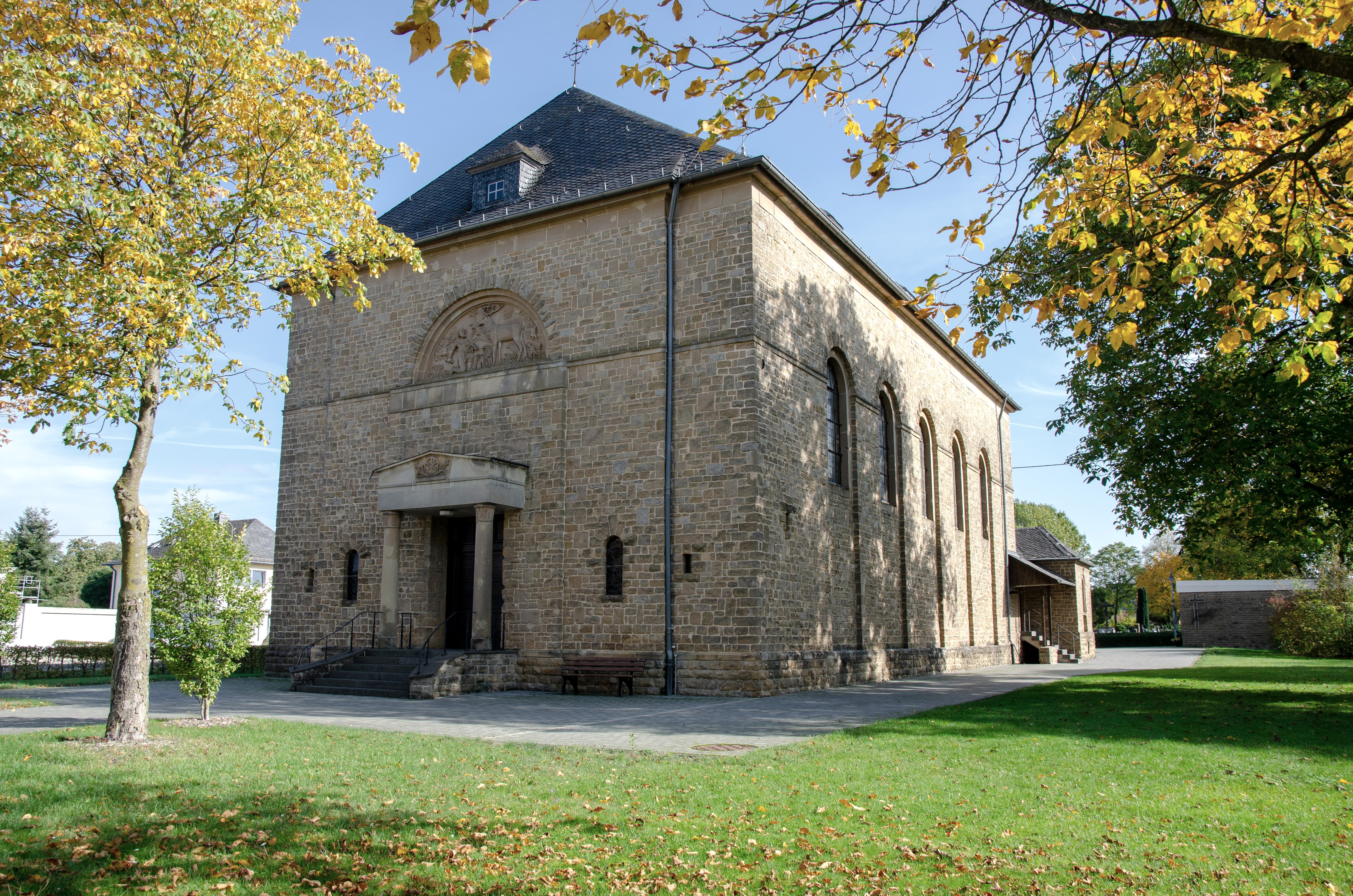 Some people wonder where the signs with the holly leaf and the number 71 lead to. You simply have to follow them. From Messenweg via Holsthumer Straße, cross the Nims and turn into Burgweg. There the signs lead along the foot of the Wolsfelder Berg for a while until the path climbs the mountain in serpentines. At the top of the plateau there is an opportunity for a wonderful view of the Nimstal and Wolsfeld, and then you meet the path that leads to the Wolsfelder Berg district. A detour of a few steps is worthwhile up to the Hubertus cross.