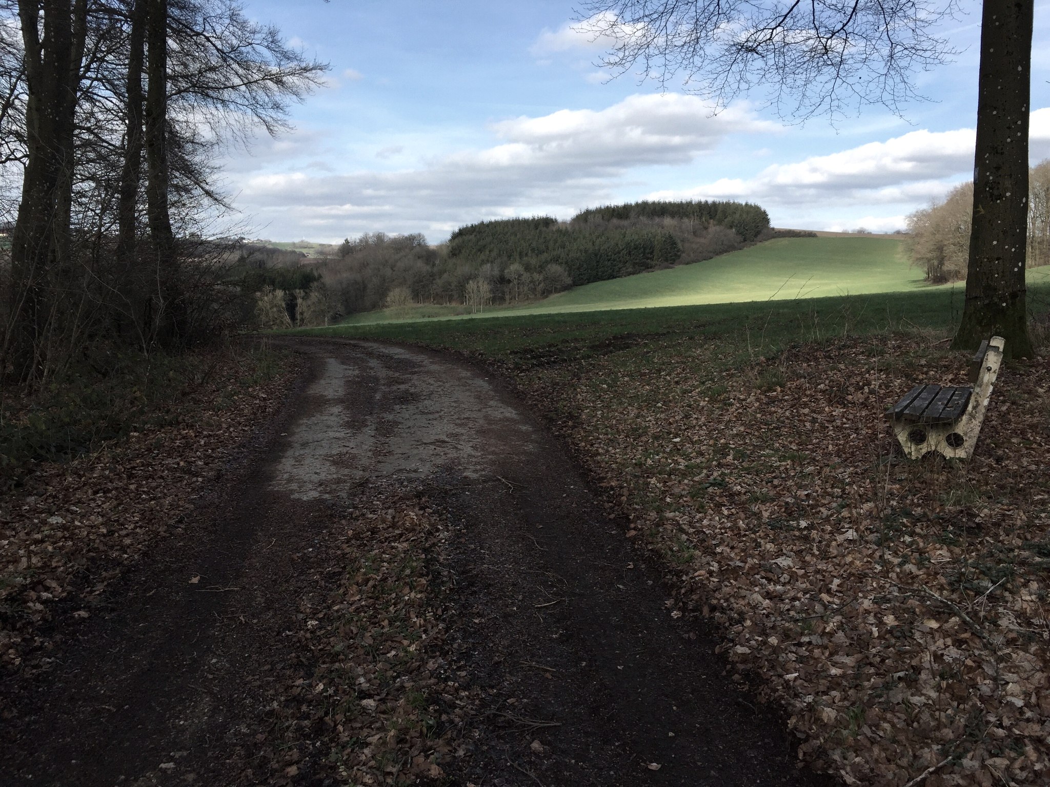 The R1 circular hiking trail offers sweeping views of the Southern Eifel landscape with the villages of Emmelbaum, Olmscheid, Jucken, Karlshausen, Leimbach, Scheuern and Plascheid.