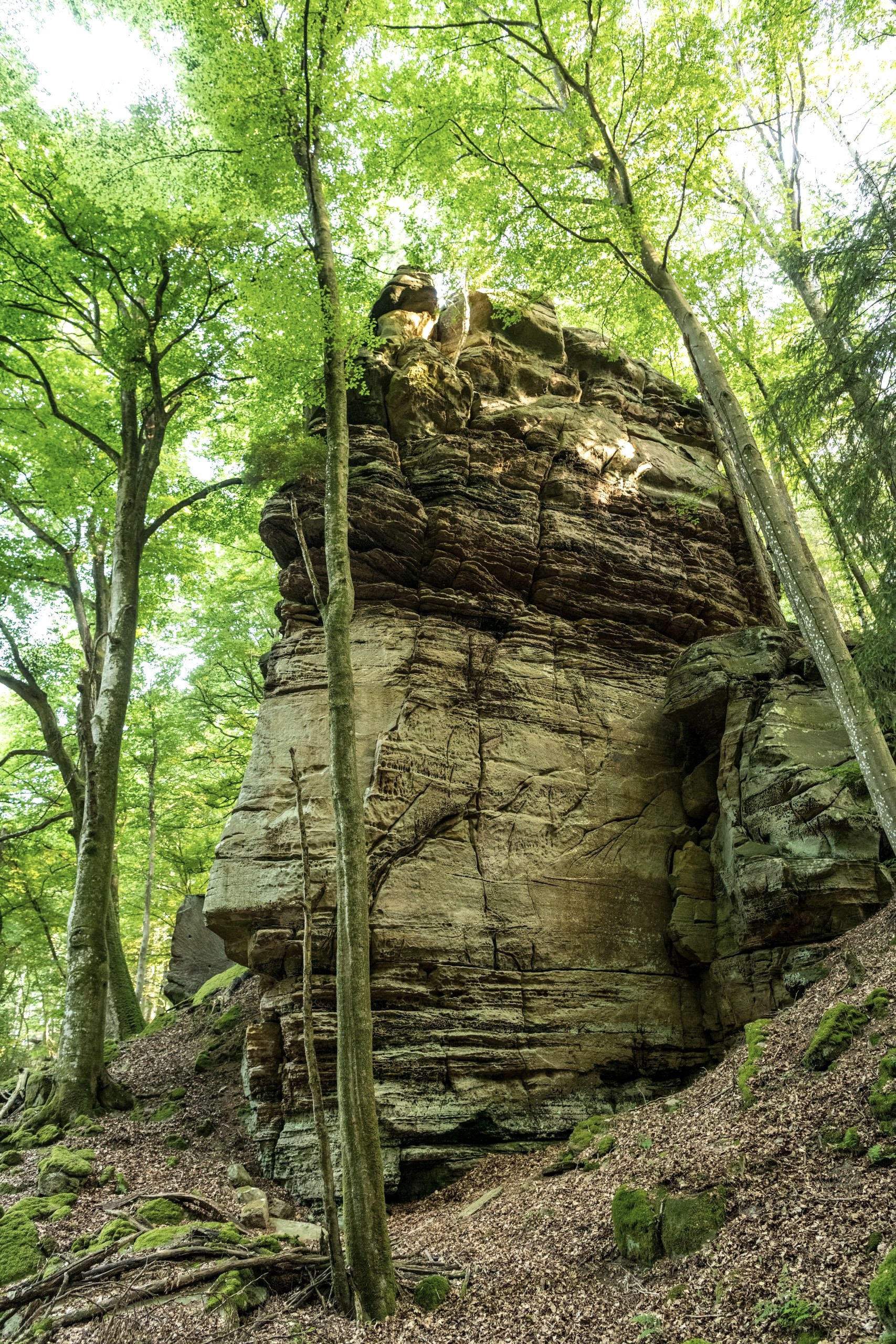 The adventurous rocky landscape has a fascinating history: Walking through it is like walking on a 190-million-year-old seabed. The grains of sand have now become a block of rock up to 70 metres thick. The rock faces are covered with bizarre weathered shapes - holes and cavities, ridges and grooves. Events around 12,000 years ago, towards the end of the last ice age, made a decisive contribution to the appearance of this landscape today. The glacial climate caused frost heave and thus huge rockfalls and landslides. Large and small sandstone blocks tore off the edges of the plateau and slid down the slopes. The most famous natural monuments on the Ferschweiler plateau, the Devil's Gorge and the Irrel Waterfalls, were created by such glacial rock slides and falls.