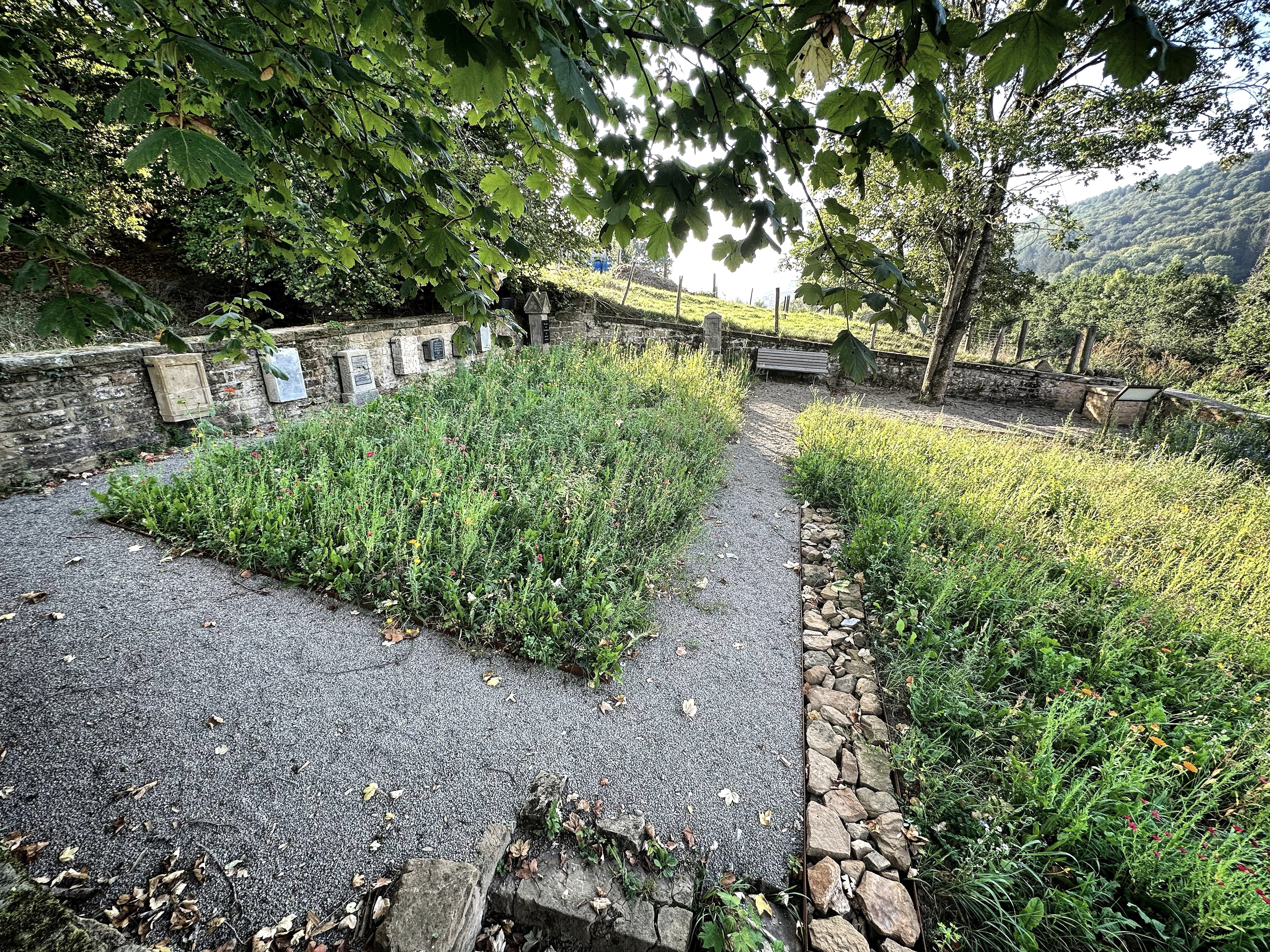 As part of the redesign, which was financed with funds from the "Rhineland-Palatinate Foundation for Culture" and the LEADER program, inscribed gravestones were removed from the outer wall and replaced with placeholders with an integrated Star of David. The gravestones that were removed were fixed to the rear cemetery wall. In addition, a path was laid out across the grounds and the burial ground was reseeded with a meadow of scattered flowers. The aim of the redesign was to create a dignified resting place and memorial and to take into account the historical significance of this site.