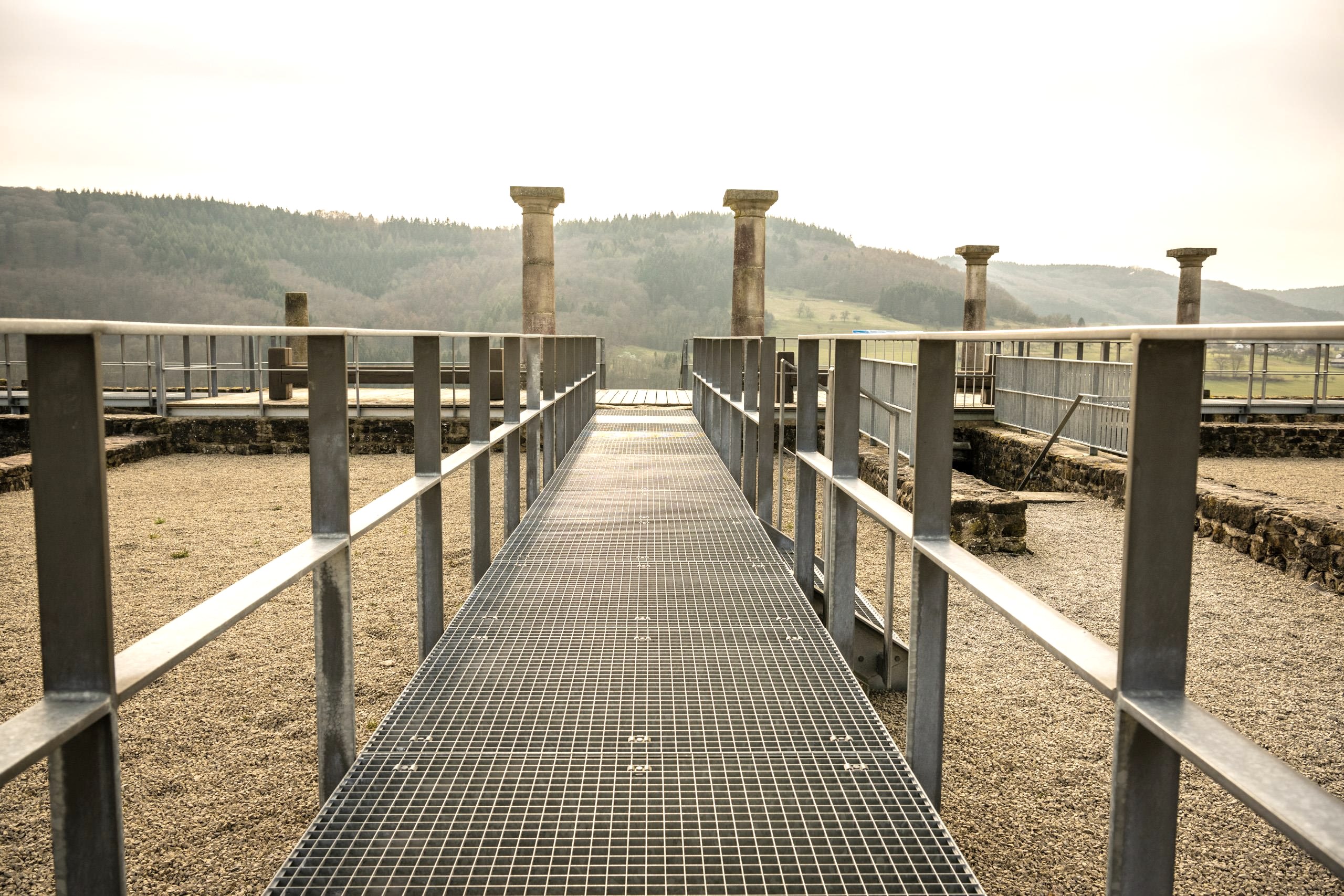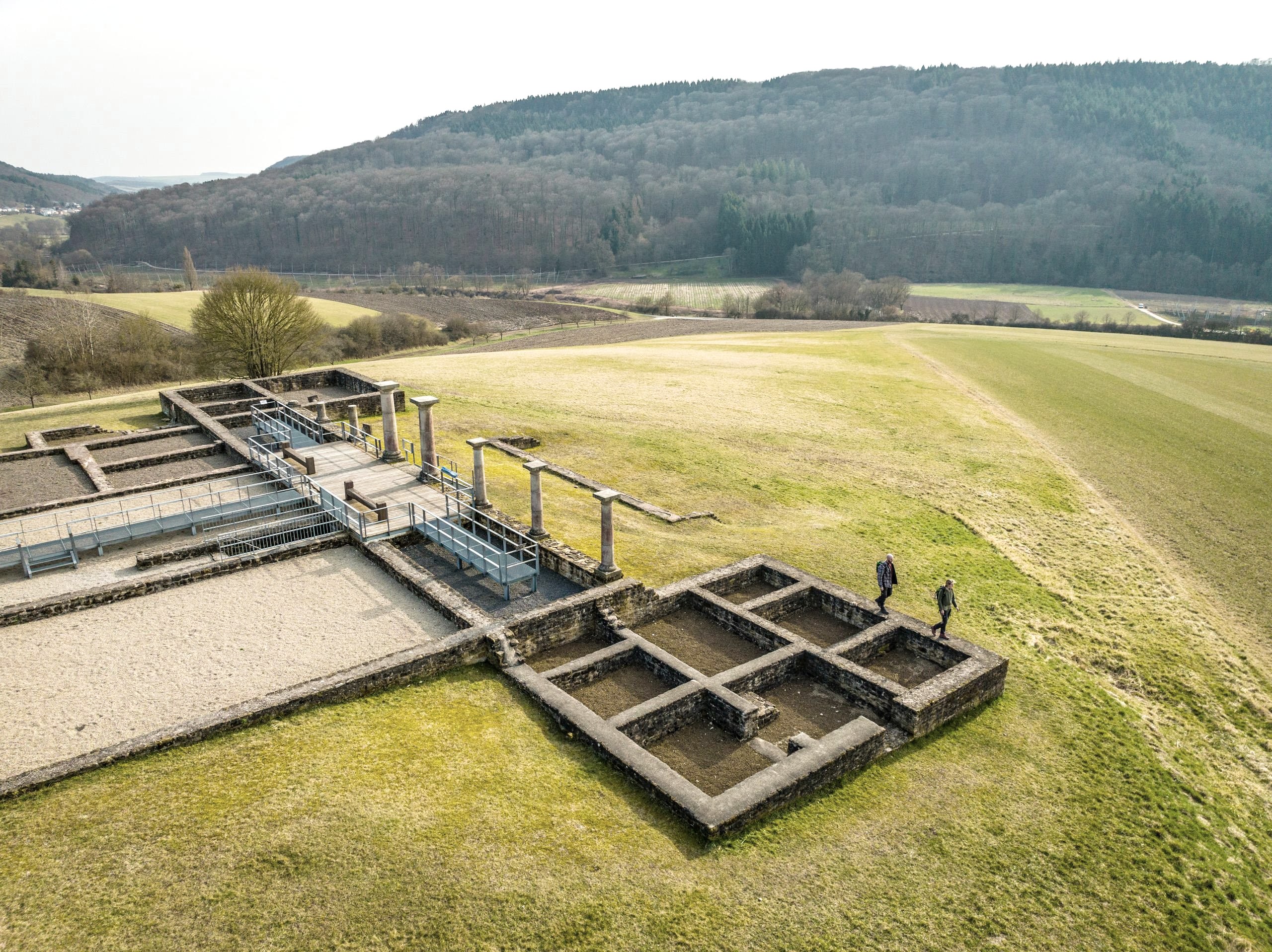 The main building of the Roman estate near Holsthum on the slope high above the Prüm was built around 100 AD. The symmetrical floor plan with a columned hall open to the valley and two corner towers at the sides is typical of this period. Surprisingly, the archaeologists found no evidence of a heated living space in the remains of the large house, and it was never remodelled.