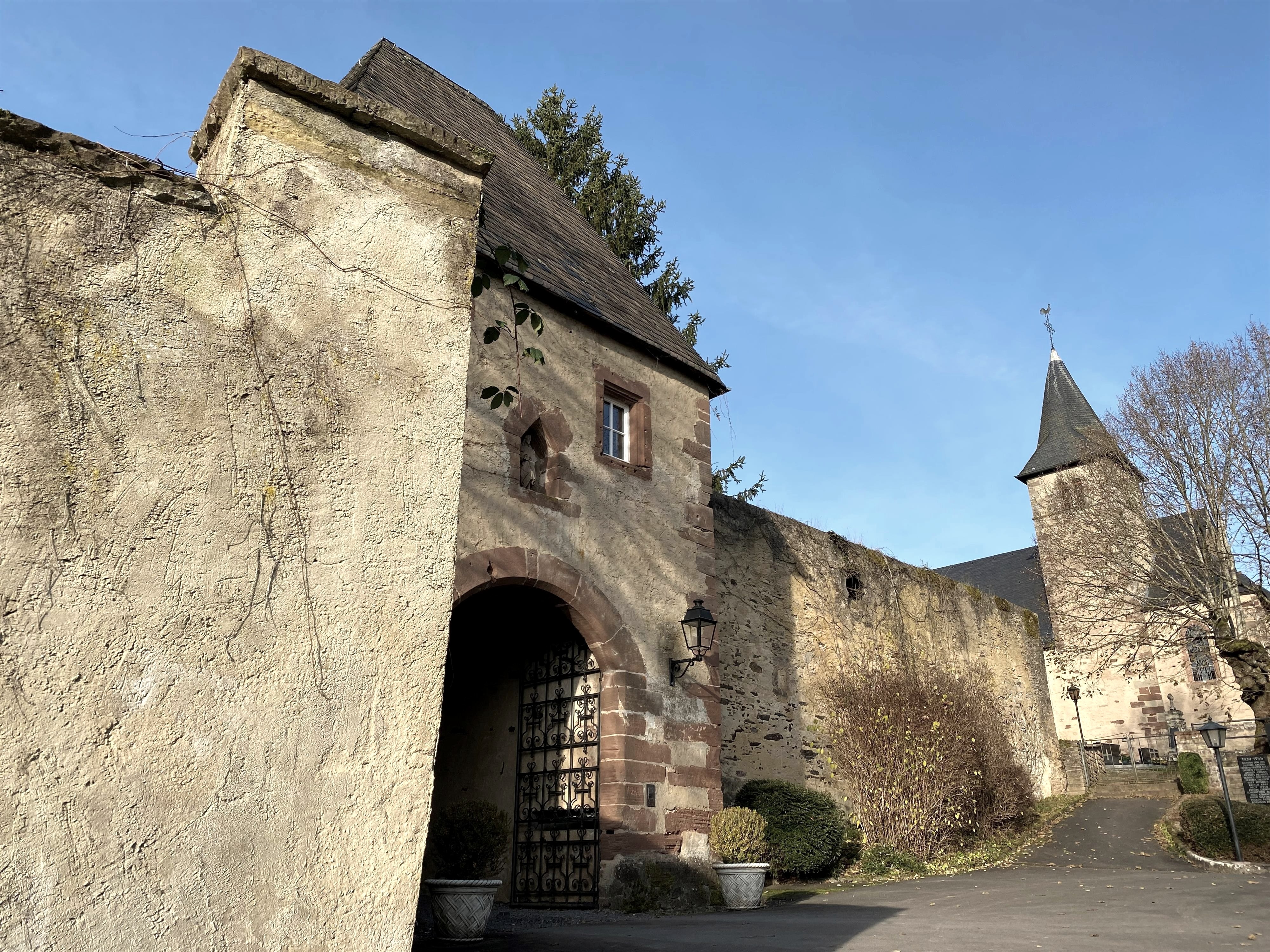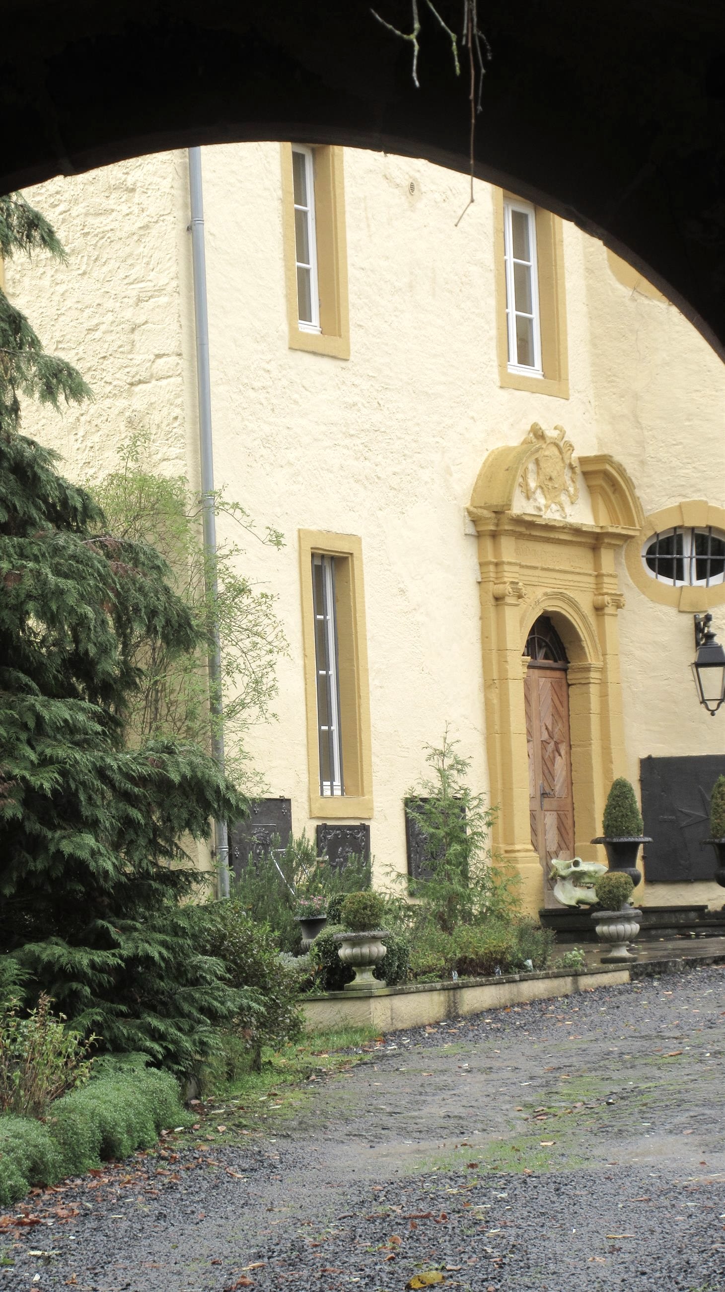 The baroque buildings of Roth Castle near Roth an der Our, together with the gatehouse in front, the neighboring early Romanesque order church and the old trees, form an incomparable ensemble.