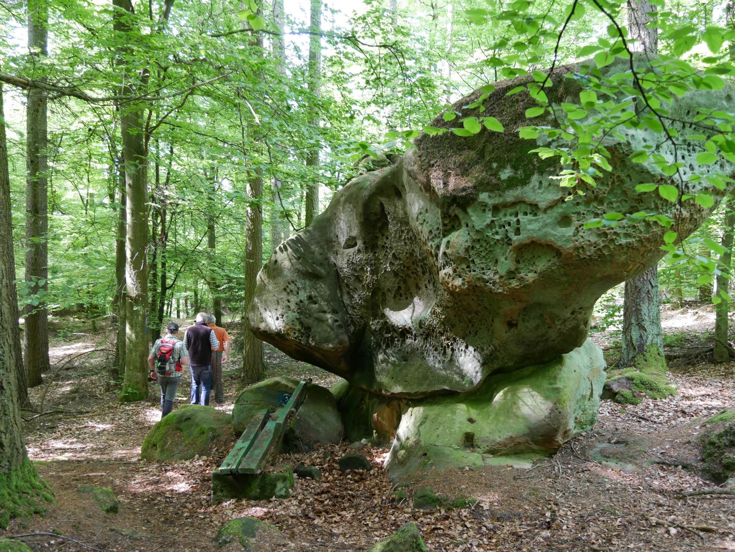 The so-called sacrificial altar, also known as Druidenstein, Heidenstein or Bärenstein, is a large sandstone block with an unusual shape reminiscent of a mushroom. It is located in the Niederburg area, the mountain plateau above Weilerbach Castle. The huge stone shows the typical weathering forms of Luxembourg sandstone and lies on a base of smaller boulders.