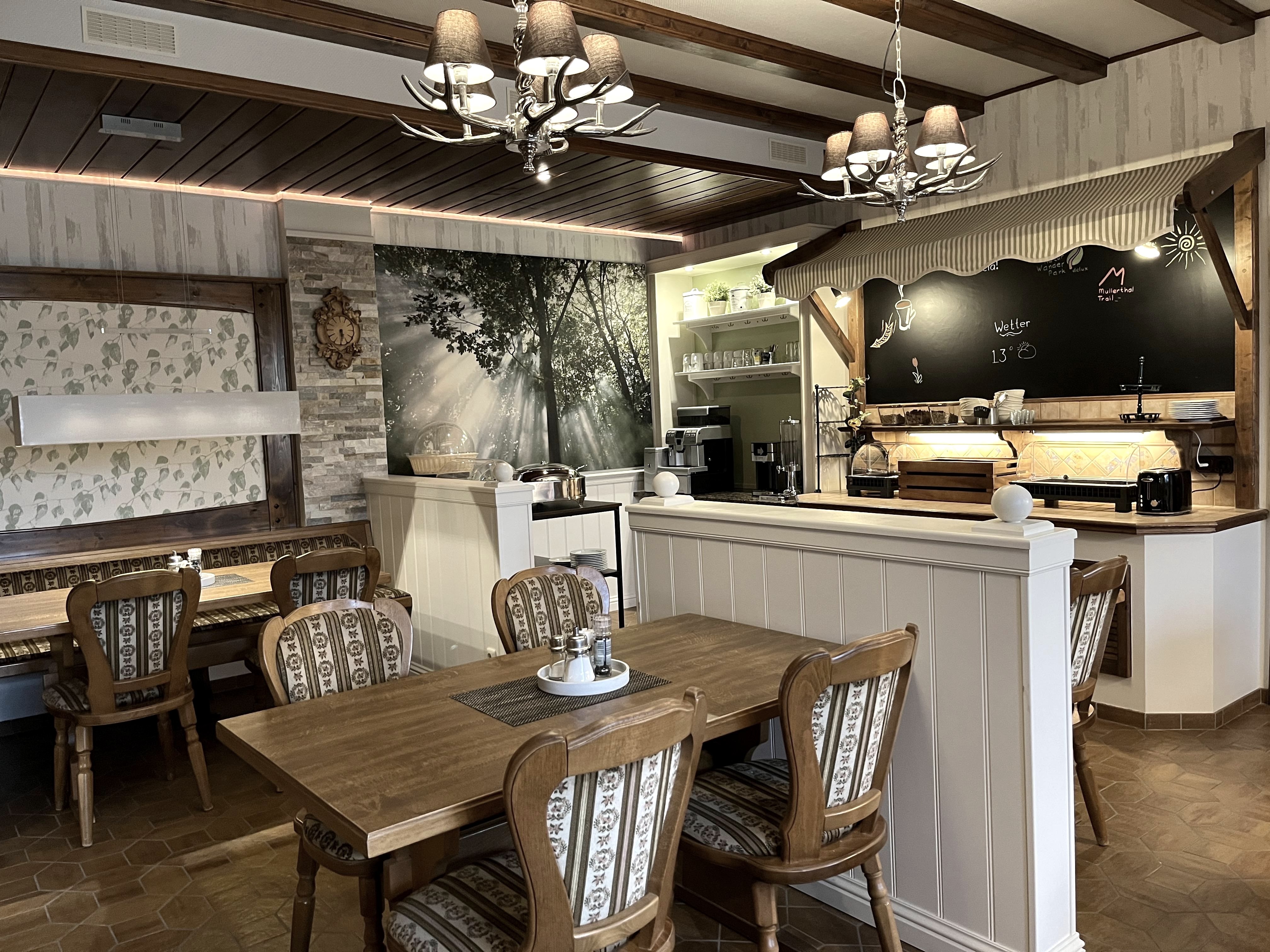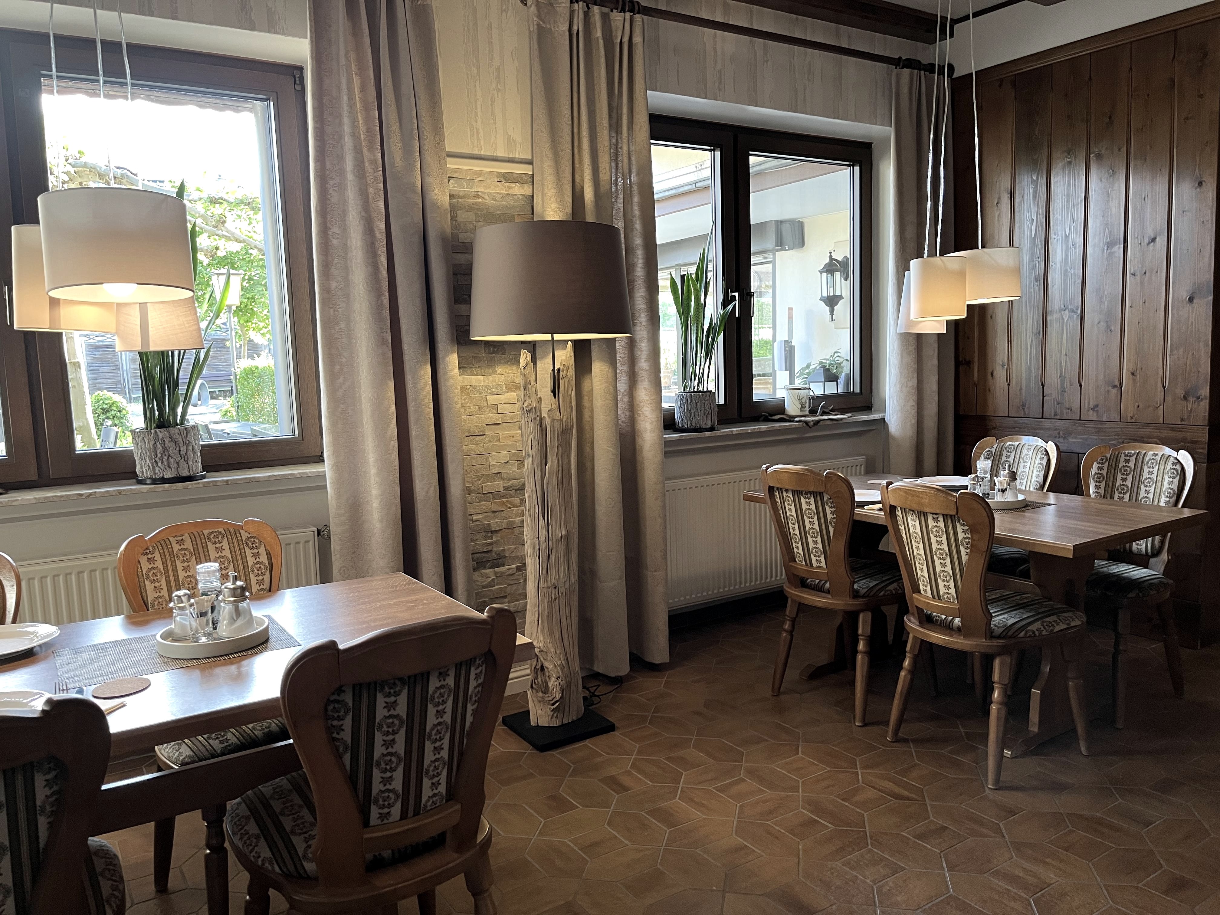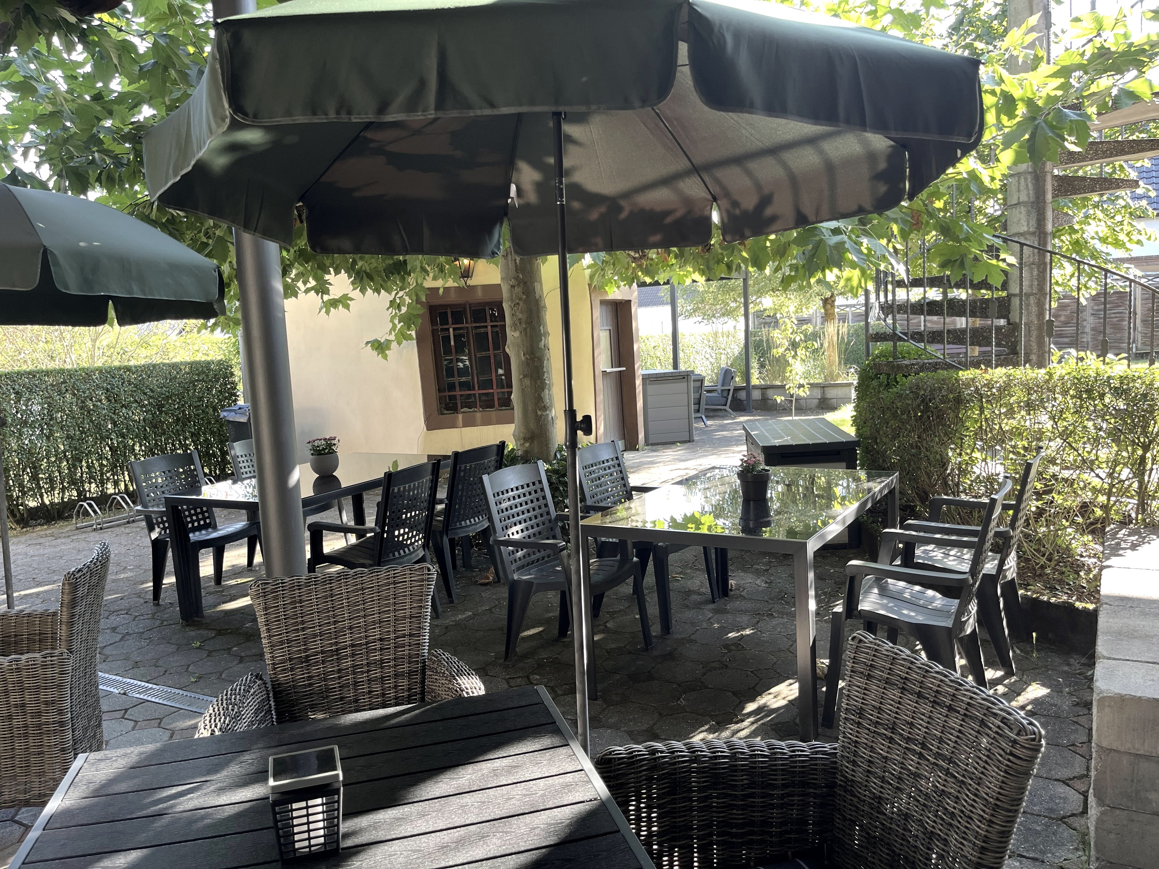 Sentez-vous comme chez vous dans une atmosphère familiale. Détendez-vous dans la salle de restaurant confortable ou sur la terrasse du jardin (service de boissons saisonnier avec des heures d'ouverture variables entre 16h00 et 20h00, sauf le lundi).