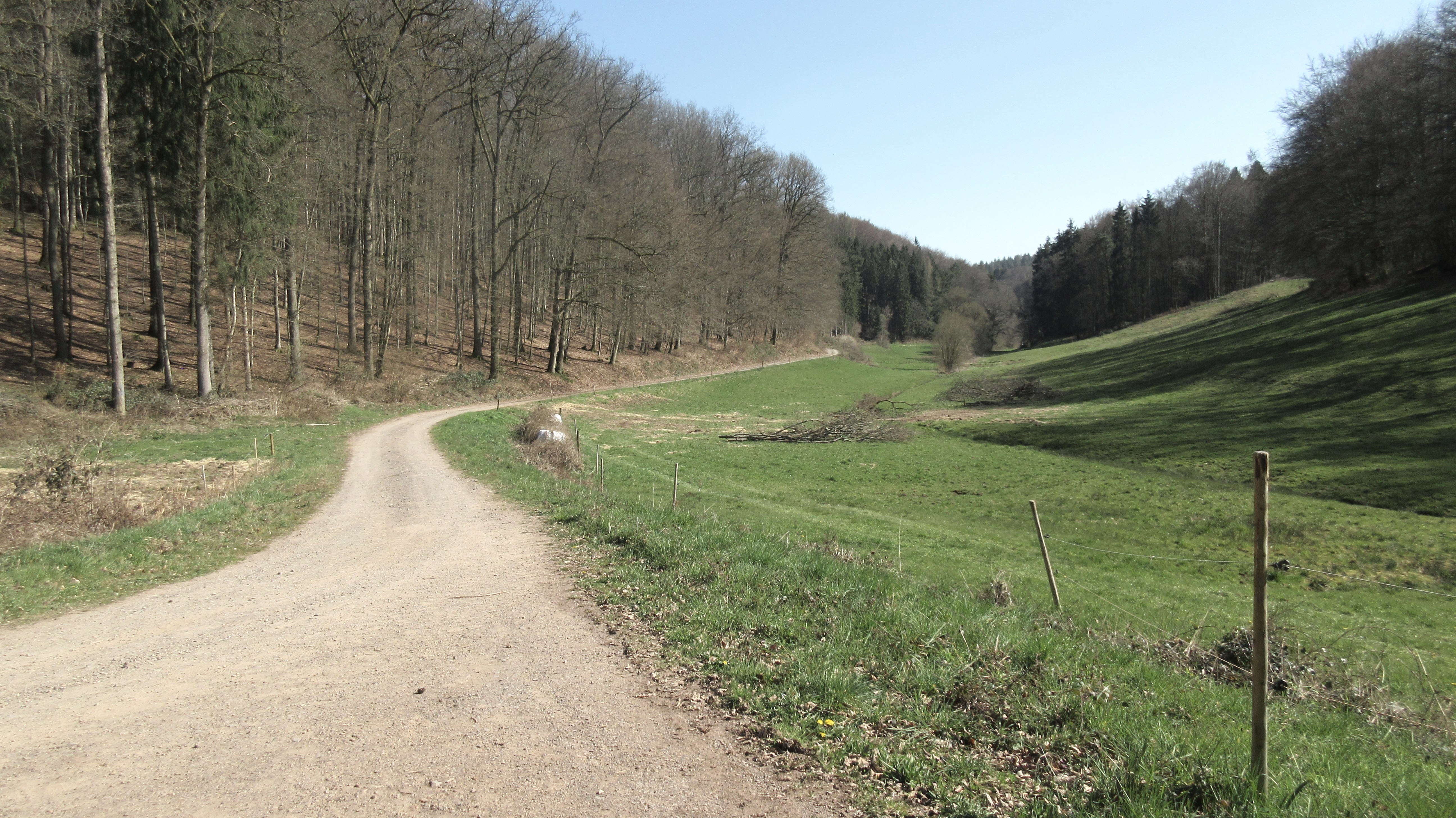 Nous commençons notre excursion d'une journée sur la place du village de Mettendorf. En longeant un peu la rue principale en direction de Sinspelt, nous arrivons par la rue "Im Weidig" derrière le terrain de sport dans le "Hangenbach" et suivons les panneaux pour le circuit du parc naturel Südeifel n° 48.