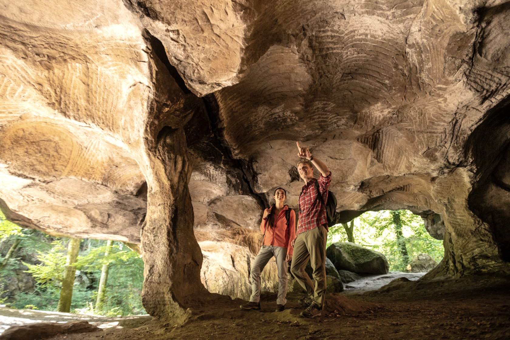 C'est ainsi que le Felsenland, au sud-ouest de l'Eifel, avec ses quelque 50 kilomètres de sentiers rocheux, est une parfaite combinaison de l'histoire de la Terre et de la culture humaine. De plus, grâce à une application gratuite, des audio-guides dévoilent les secrets de "l'enfer vert", les légendes et les histoires de contrebande dans la région frontalière entre le Luxembourg et l'Allemagne, lors de quatre circuits dits "à l'écoute".