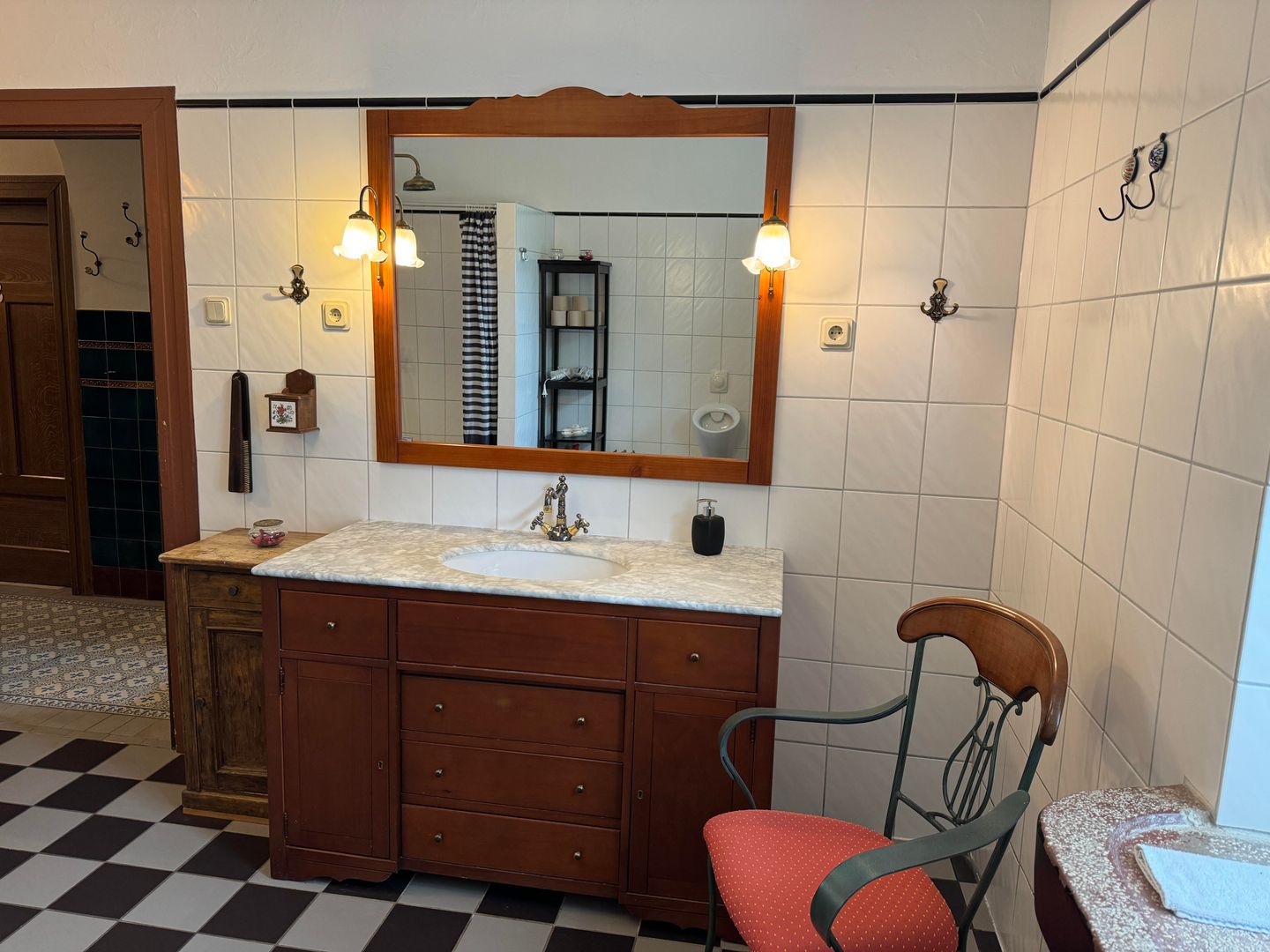 Dans notre maison d'habitation datant de 1924 se trouvent trois chambres doubles que nous avons aménagées avec beaucoup d'amour du détail. Elles peuvent être louées séparément ou toutes ensemble comme appartement de vacances. Dans le couloir se trouve une salle de bain commune qui, en cas de réservation en tant qu'appartement de vacances, est alors privée.