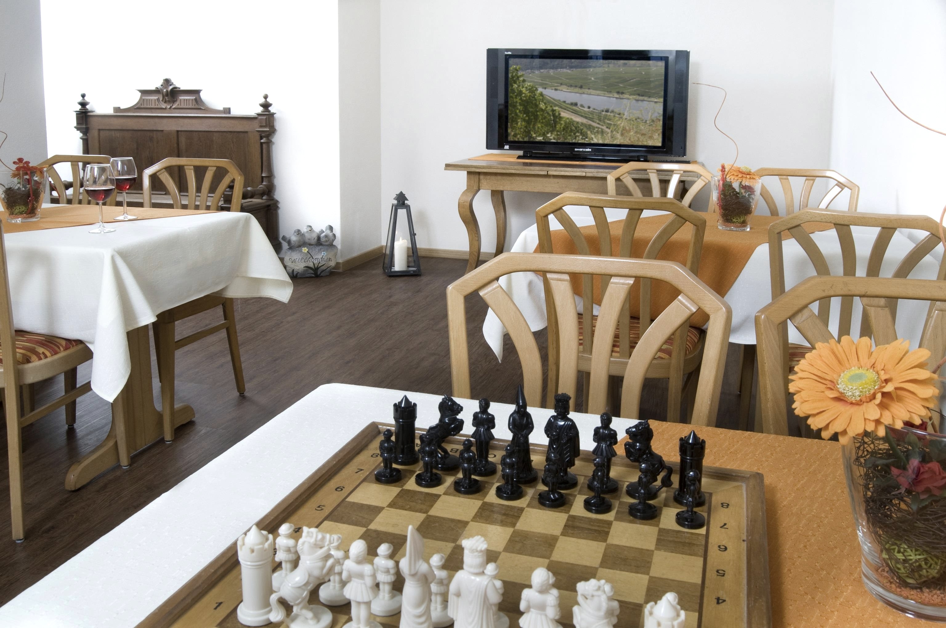 Für kleinere Gruppen steht ein separater Raum zur Verfügung. Wir sind motorradfreundlicher Gastgeber ADAC.