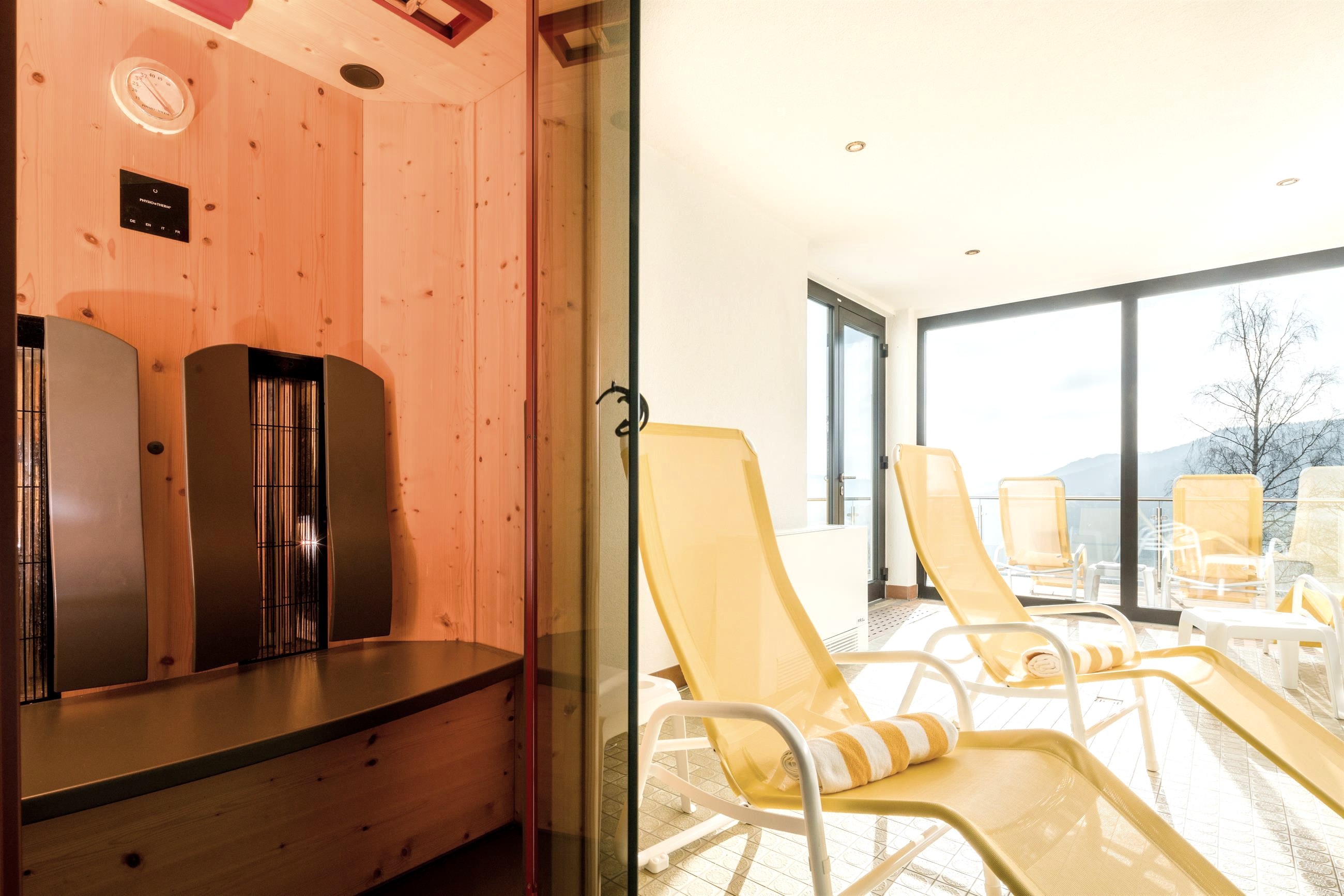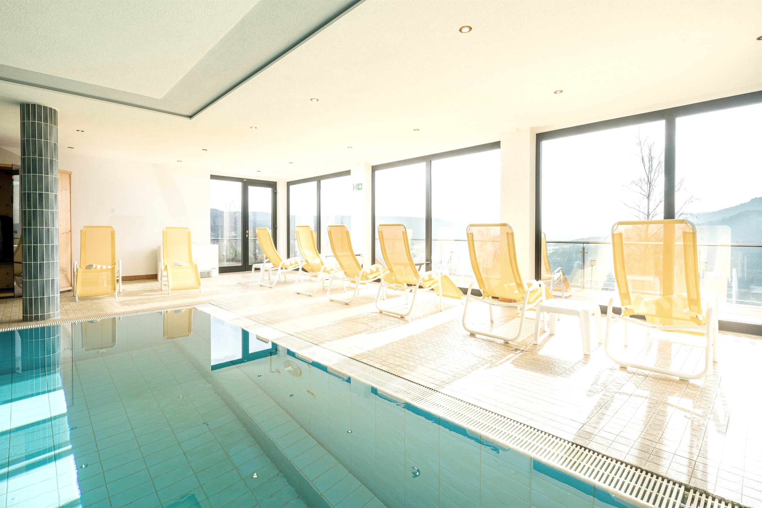 - Panoramahallenbad mit Wasserversorgung aus natürlicher Waldquelle 5 x 10 m | Sauna | Sonnenbank | Massagen | Saunaaußenterrasse