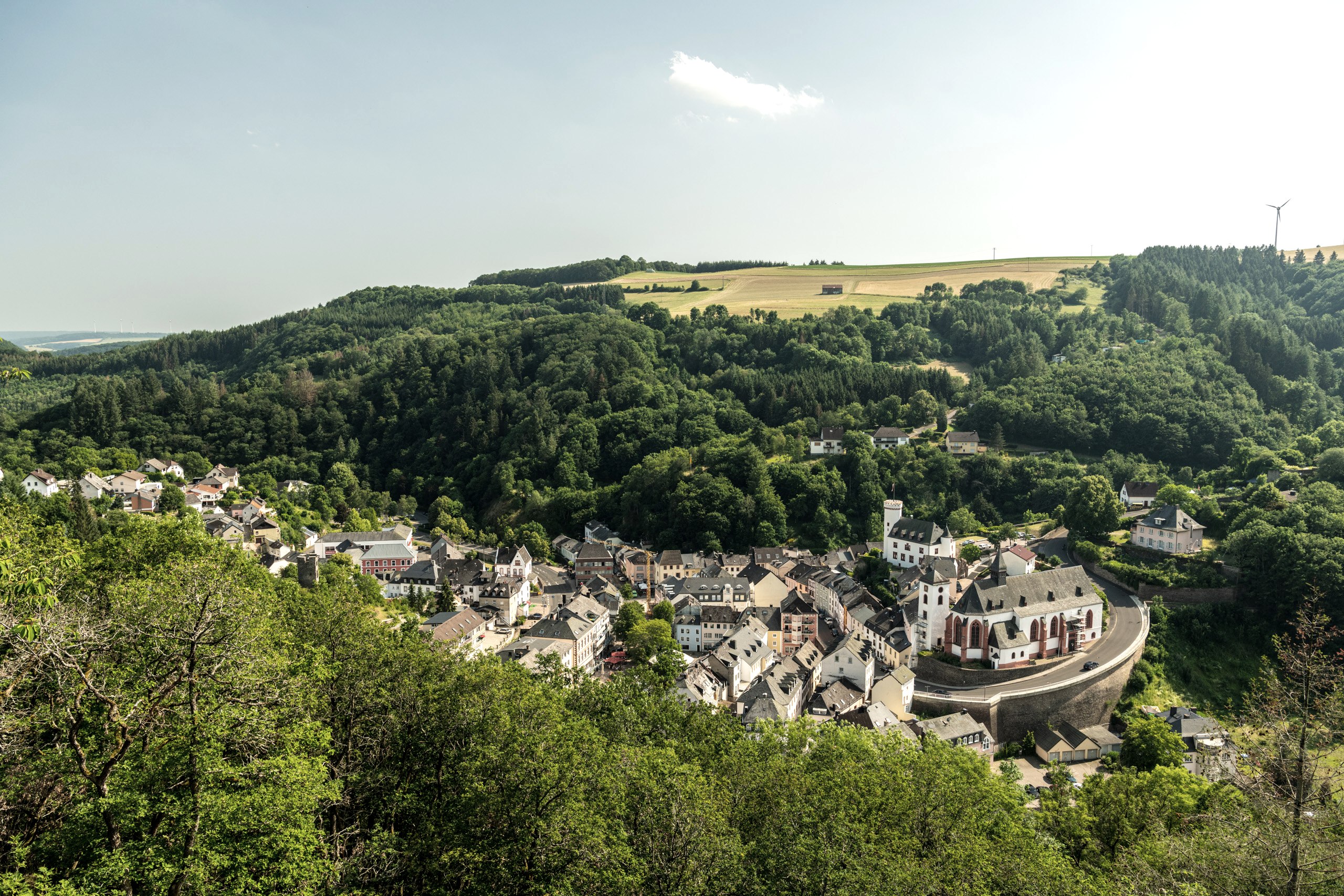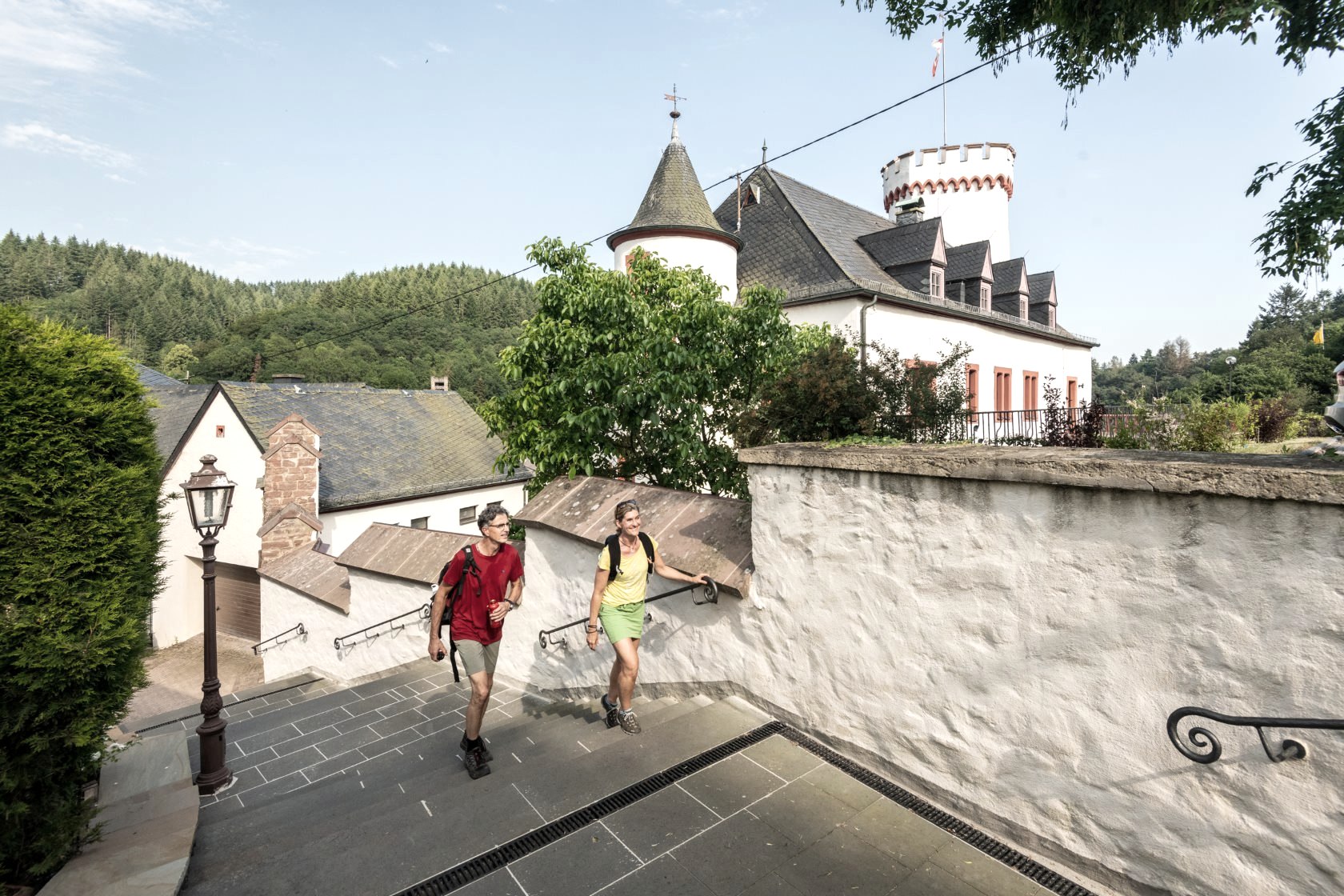 Het grootste bewaard gebleven kasteel van de Eifel ligt hoog op een uitloper van leisteen en kijkt uit over de machtige kerk en de kasteelachtige pastorie op het marktplein van Neuerburg. De historische stad ligt in het romantische Enz-dal, omgeven door beboste heuvels die je tijdens je rondwandeling doorkruist.
