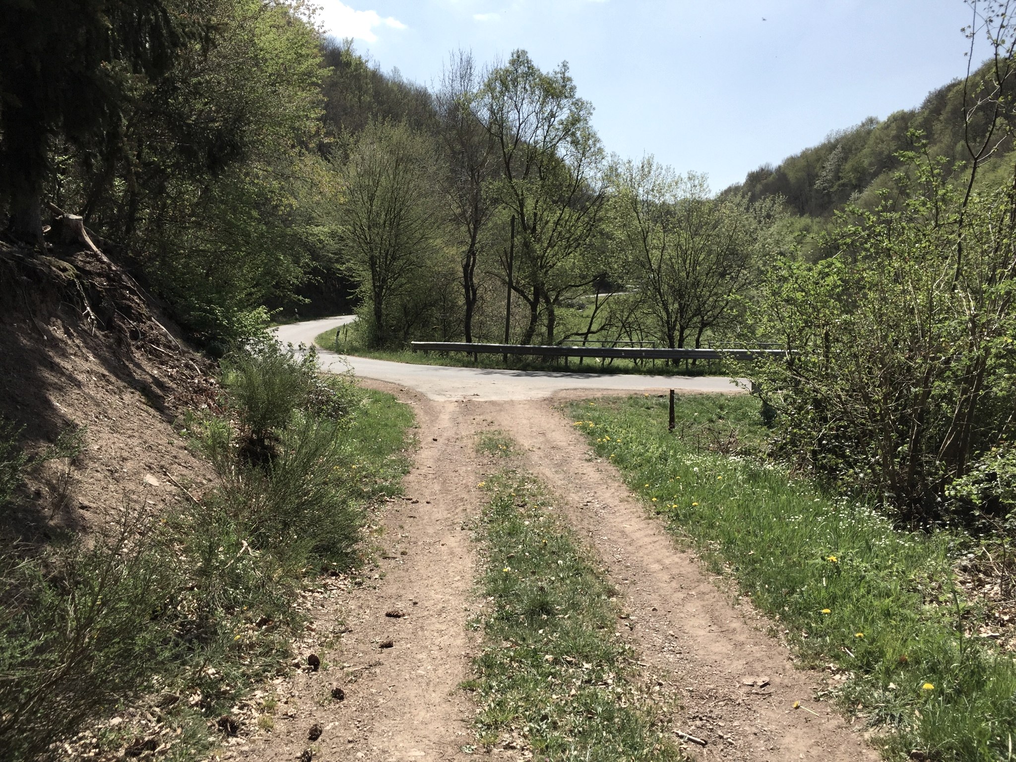 Het gaat door het bos, dan steil bergafwaarts naar Engelsdorf, en later weer bergopwaarts.