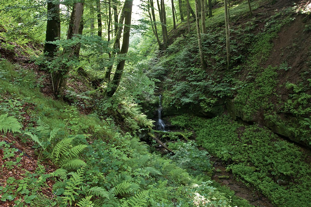 Drie diep ingesneden kloven van rode zandsteen wachten op je. Niemand zou vermoeden dat deze natuurspektakels verborgen liggen in de dichtbeboste hellingen van het Ringsbachtal. De wandeling boven de zuidelijke, grootste kloof biedt fascinerende uitzichten op de wanden en watervallen van rode zandsteen die hier omhoog torenen. Gedeelten met Jurassic Park-achtige varens en bramenstruiken worden afgewisseld met veld- en weidepassages met prachtige vergezichten over het weidse Enz-dal. Bewijzen van de vroegere kleimijnbouw zijn te vinden in het natuurreservaat "Tongruben", tegenwoordig een habitat voor bedreigde vogels, amfibieën, reptielen en insecten. Ga even in het gras liggen en luister naar het drukke getjilp, gezoem, gebrom en gekwetter - het is balsem voor de ziel!