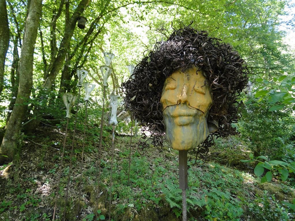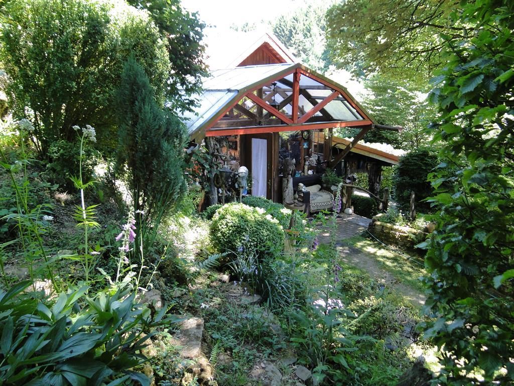 Wer in die Eifel fährt, tut das zumeist mit dem Ziel, möglichst unverfälschte Natur zu erleben und zu genießen. „Kunst sucht hier eigentlich niemand“ räumt selbst Heidemarie Knopp ein. Gemeinsam hat sie mit ihrem Mann über rund 25 Jahre etwas aufgebaut und entwickelt, das in der Südeifel seines Gleichen sucht. Im Kunst- und Skulpturengarten der Familie Knopp verschmelzen die unberührte Landschaft des Raden- und Michelbachtals mit Skulpturen, Installationen und kleinen Ausstellungspavillons, die sich organisch in das hängige Naturgrundstück einfügen. Bei der gezeigten Kunst handelt es sich fast ausschließlich um Werke von Heinz (Tobbi) Knopp, die mit dem ihm eigenen Witz und seiner besonderen Inspiration gestaltetet sind. Stilistisch ist sein vielfältiges Werk kaum einzuordnen. Mit dem Begriff „märchenhafter Surrealismus“ lassen sich die Werke aus Pappmaché, Holz, Metall und diversen Recyclingsamterialen am besten umschreiben. Der Knopp’sche Kunst- und Skulpturengarten ist ein Muss für jeden Natur- und Kulturfreund! Durch das Werk ihres Mannes und das Gartenidyll führt Heidemarie Knopp gern interessierte Kunst- und Naturliebhaber nach Voranmeldung.