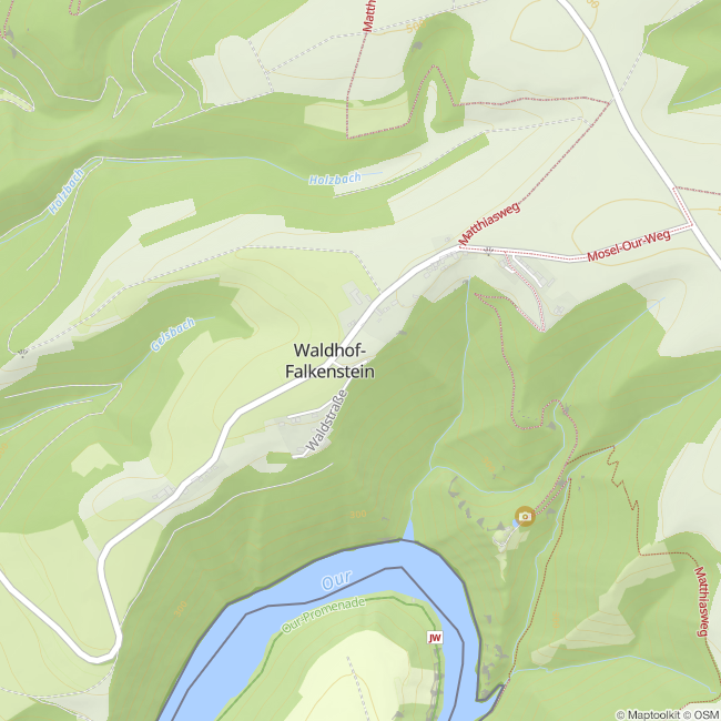 Das Tal der Our bietet unberührte Natur und reiche Kulturgeschichte. Typisch sind die vielen Talschlingen und der ständige Wechsel von weiten und engen Talabschnitten. Einer der beeindruckendsten Ausblicke zeigt sich auf die markante Ourtalschleife bei Waldhof-Falkenstein.