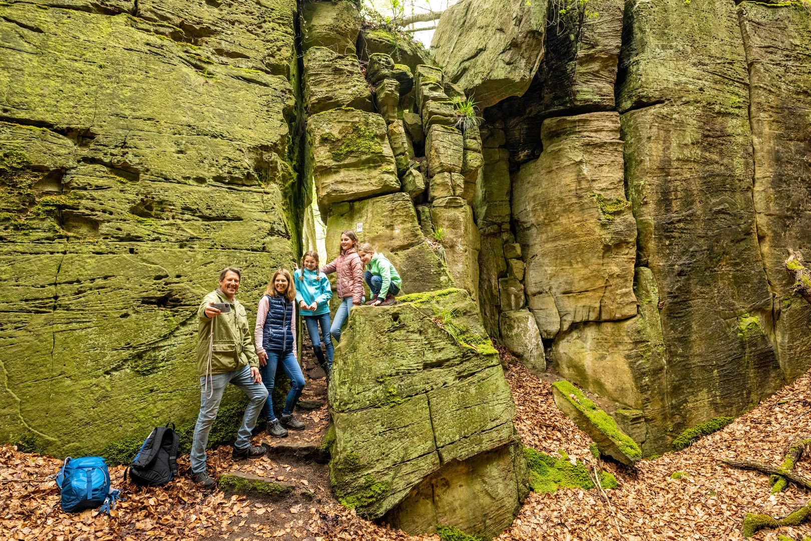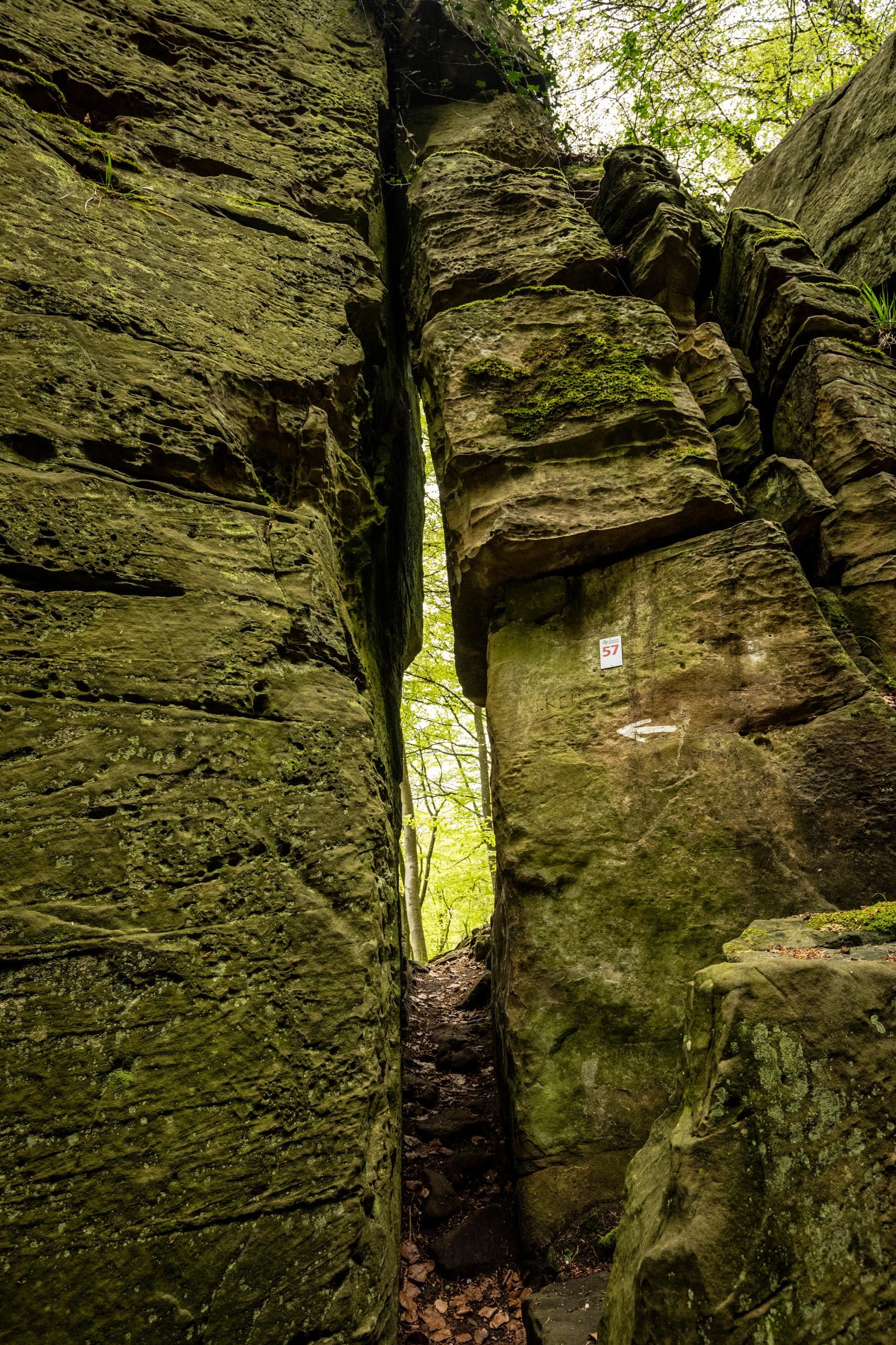 Teufelswerk oder von der Natur geschaffen? Wer durch die bizarren Felsformationen des Ferschweiler Plateaus wandert, mag sich diese Frage immer wieder stellen, so unwirklich erscheinen manche Schluchten, Klüfte und mächtigen Türme aus Lias-Sandstein. Die dunkle Schlucht mit meterhohen Wänden am Plateaurand oberhalb des Sauertals ist eine der vielen beeindruckenden Hinterlassenschaften der eiszeitlichen Felsrutschungen und trägt nicht umsonst den Namen "Teufelsloch".