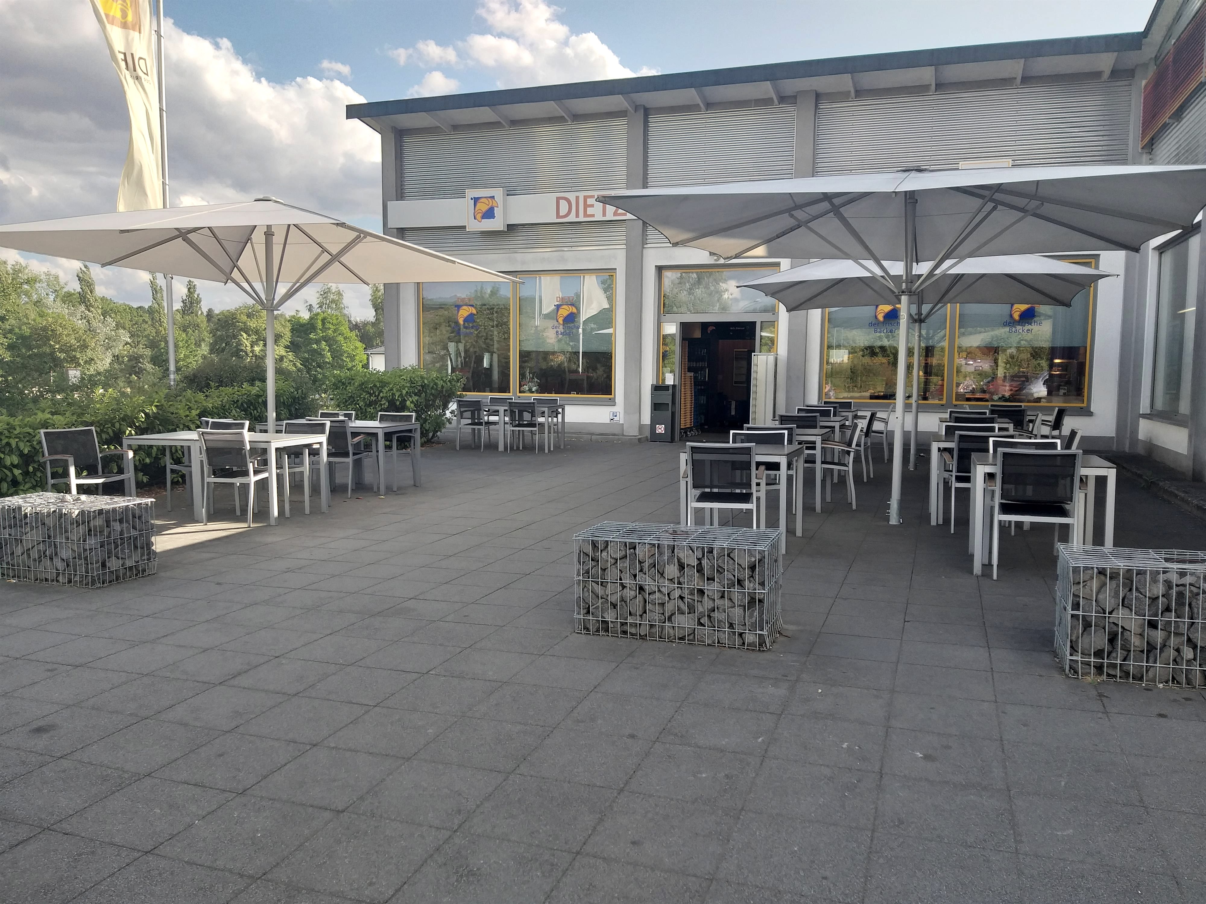 Sitzmöglichkeit zum Verweilen und Genießen finden Sie im Innenraum und auf der geräumigen Außenterasse.