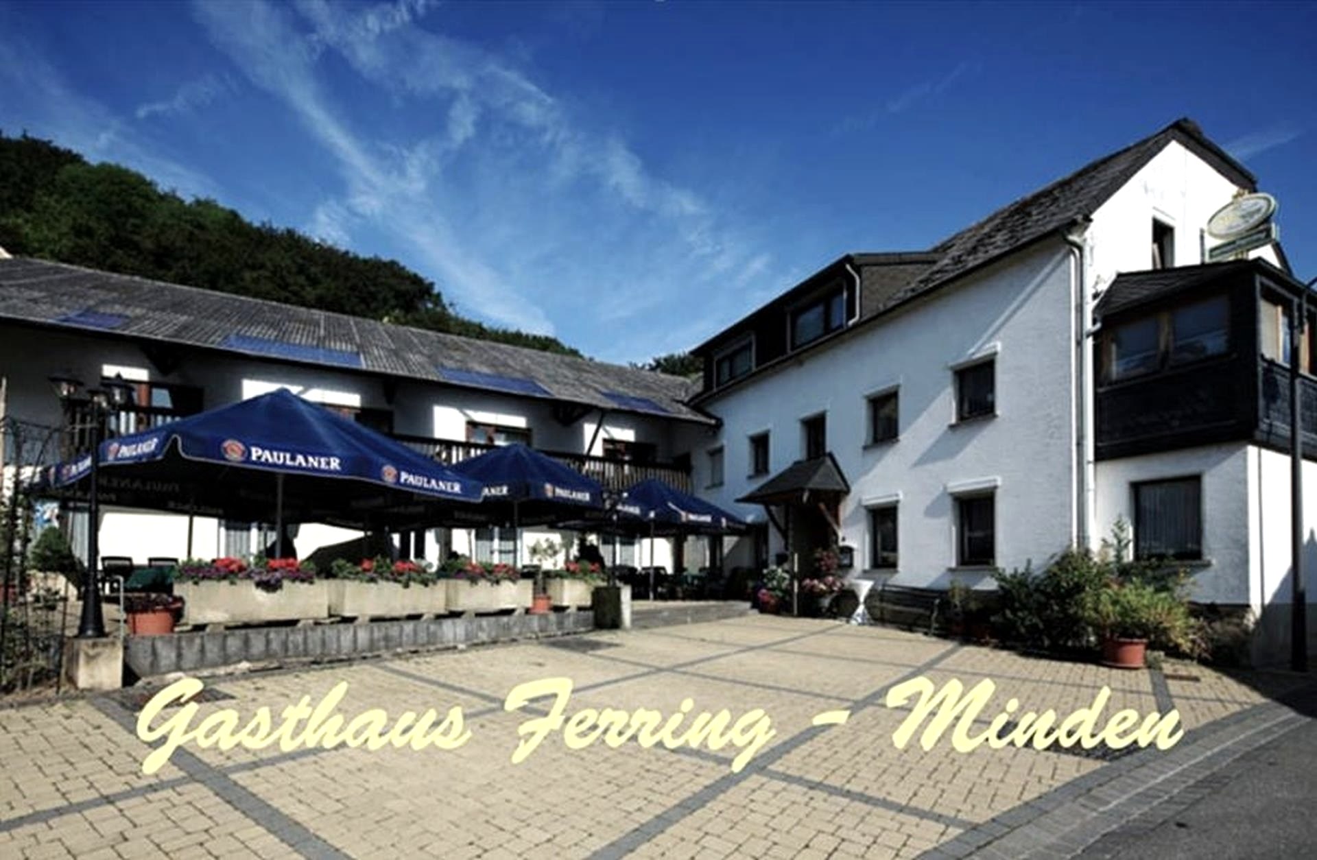 In den Sommermonaten kann man auf der Terrasse mit großem Biergarten und schönem Ausblick auf die Ortsmitte von Minden verweilen.