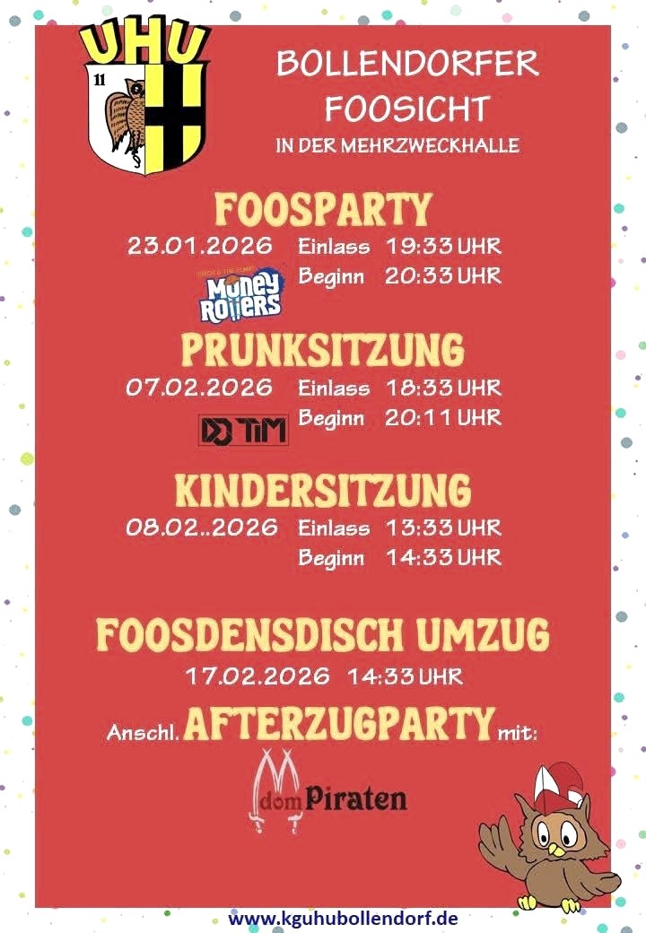 17.02.2026 Foosdensdisch Umzug ab 14:33 Uhr entlang des Sauerstadens