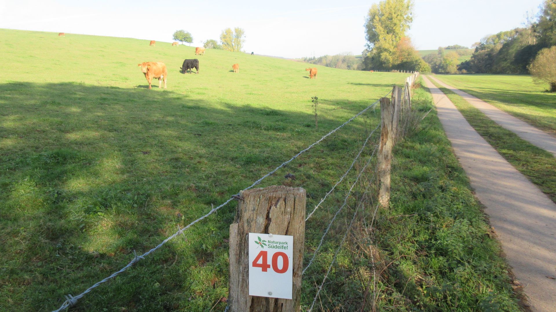 Sie können sich auf eine kleine, aber sehr abwechslungsreiche Wanderung freuen. Der Wanderweg 40 führt Sie immer wieder auf und ab entlang von weitläufigen Feldern und Wiesen. Hier lohnt es sich, mehrmals stehen zu bleiben und die Aussicht zu genießen, spätestens, wenn man auf der kleinen Anhöhe angekommen ist.