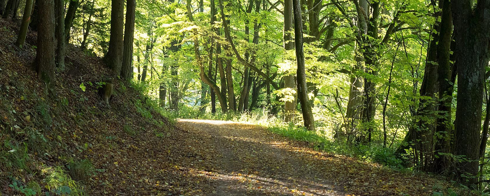 Der Rundweg führt komplett über Waldwege durch den Nusbaumer Hardt.