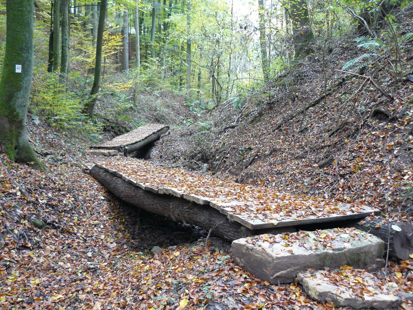 Schöne Aussichten auf die weite Enzaue, in der man mit ein wenig Glück Graureiher auf der Pirsch beobachten kann, sowie auf Mettendorf mit den umgebenden Laubwaldhöhen des Gutlandes charakterisieren diesen Weg. Ein kurzer Bohlenweg auf der Talsohle sorgt auch bei stärkerer Wasserführung für trockene Füße und verleiht diesem Abschnitt ein abenteuerliches Flair.