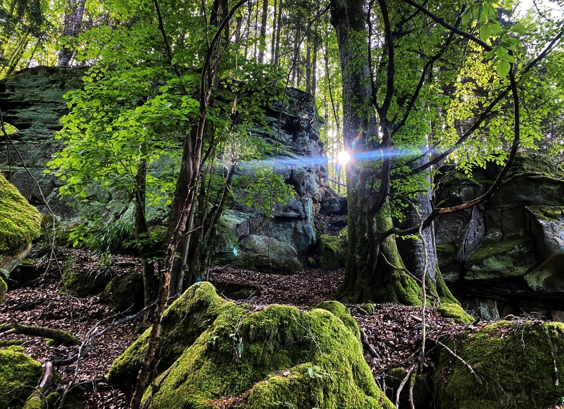 Die Route führt über sanfte, teils steiler ansteigende Waldwege entlang des Plateaurands, das vor ca. 200 Mio. Jahren aus Strandablagerungen des Liasmeeres entstanden ist. Dieser Teil des Plateaus bildet eine Art natürliche Festung, die bereits seit Jahrtausenden Siedlungsspuren aufweist. An verschiedenen Punkten gibt es Informationen zur Siedlungsgeschichte und den unterschiedlichen Baumarten des Waldes. Die zwischen den Bäumen auftauchenden natürlichen Felsformationen verleihen dem Weg eine mystische Szenerie.