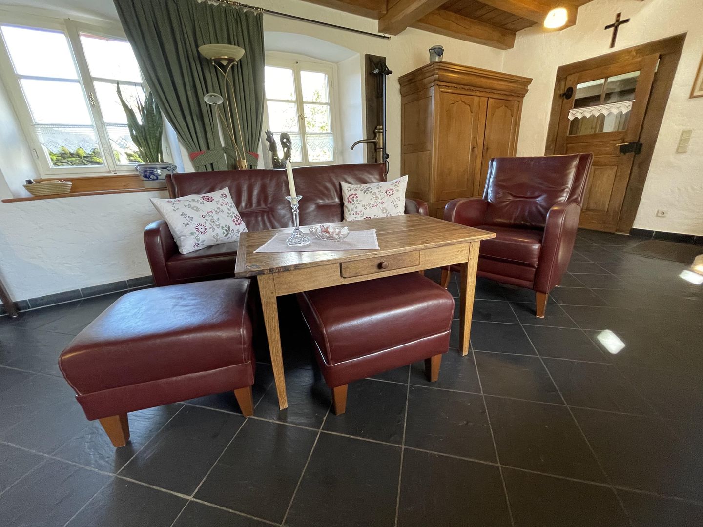 Das "Alte Backhaus" ist liebevoll restauriert und bietet viel Platz - vereint modernsten Wohnkomfort mit regionaler Bauweise. Mit 85 qm Wohnfläche, 2 großen hellen Schlafzimmern, Bad mit DU/WC und WC, Diele und separatem Vorratsraum. Der ca. 40 m² große Wohnraum mit altem Steinbackofen ist zum Mittelpunkt des Hauses geworden. Urgemütlich, mit seinem historischen Ambiente gehört es zu einer denkmalgeschützten, eifeltypischen Hofanlage von 1850. 4 geschmackvoll eingerichtete Ferienwohnungen bieten sowohl Gruppen als auch Individualisten Raum zur Erholung.