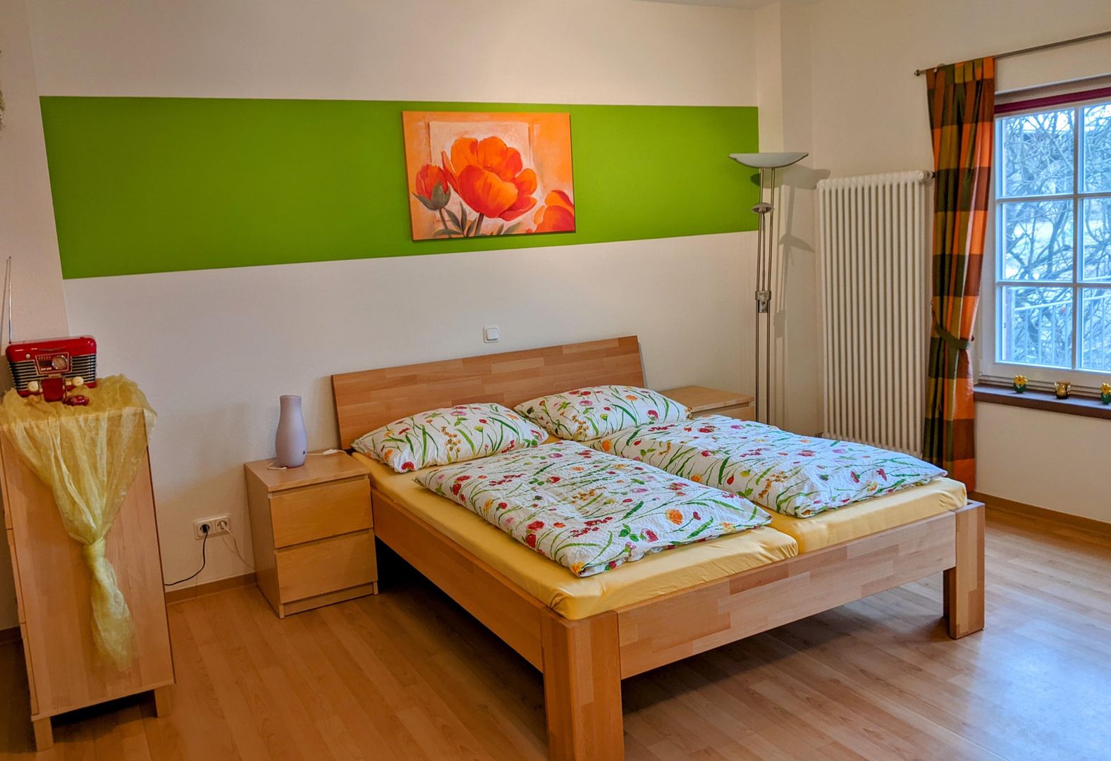 Auf ca. 40 m² mit separatem Eingang steht Ihnen ein heller Wohn- und Schlafraum mit komplett eingerichteter Küchenzeile, TV und Kompaktanlage, Bad mit Dusche und WC und ein großer Balkon (5 x 1,5 m) zur Verfügung.