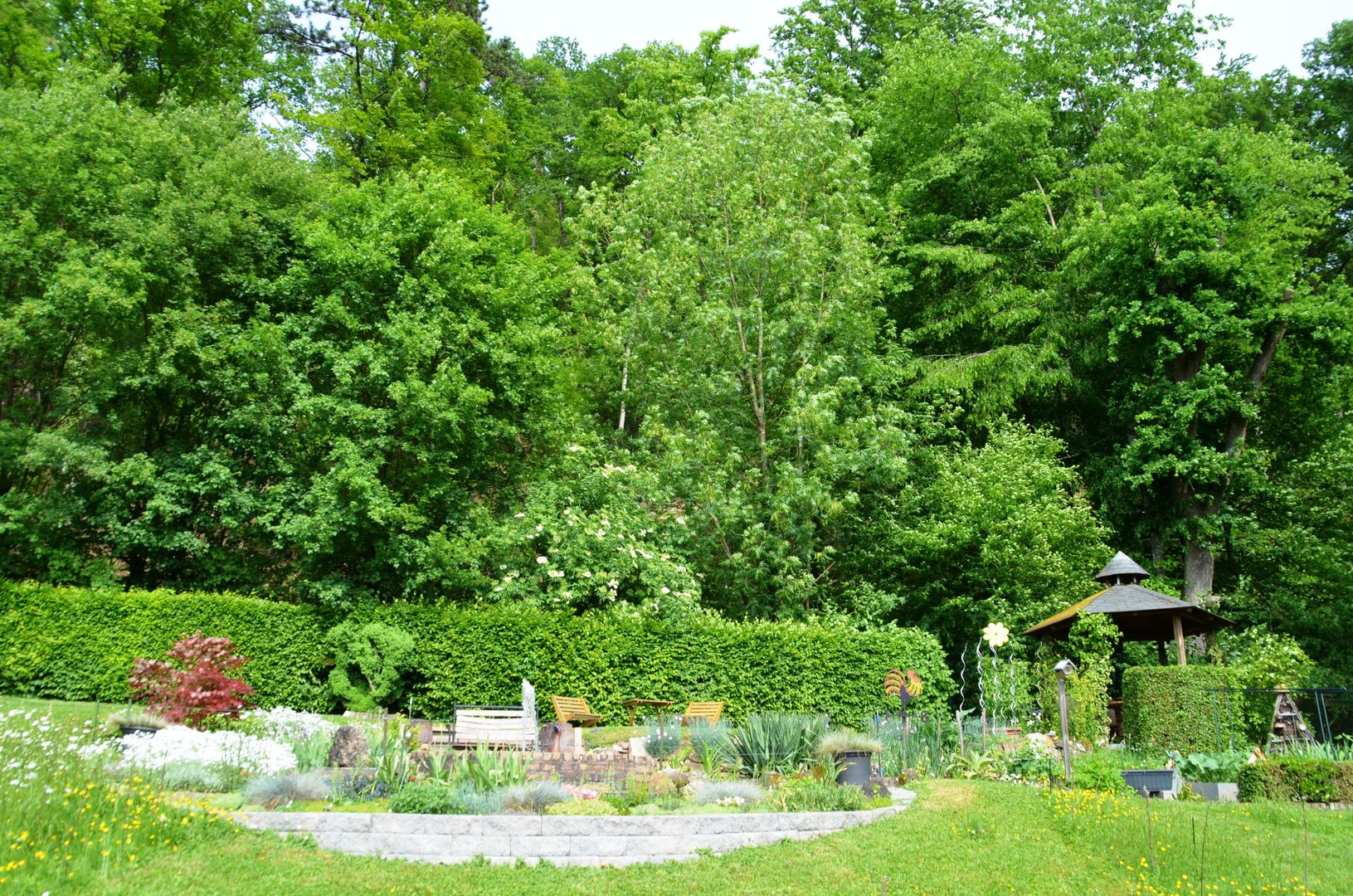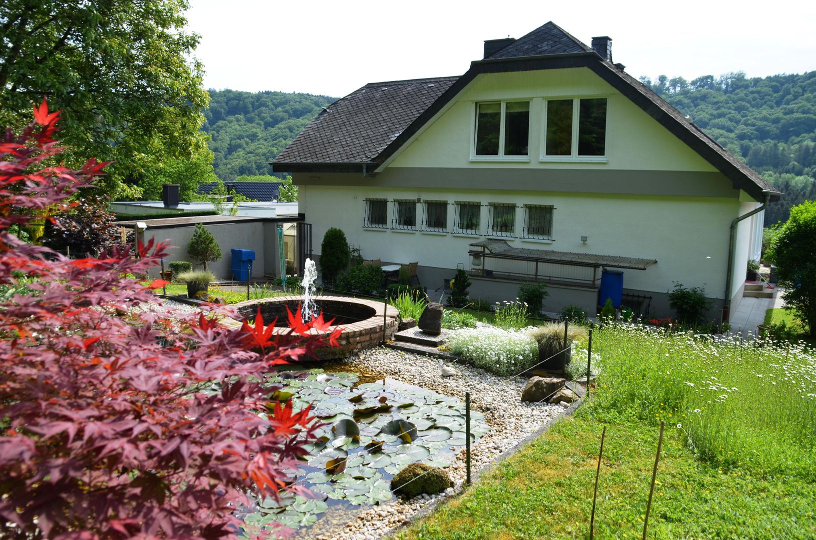 und die weitläufigen Terrassen Gartenanlagen