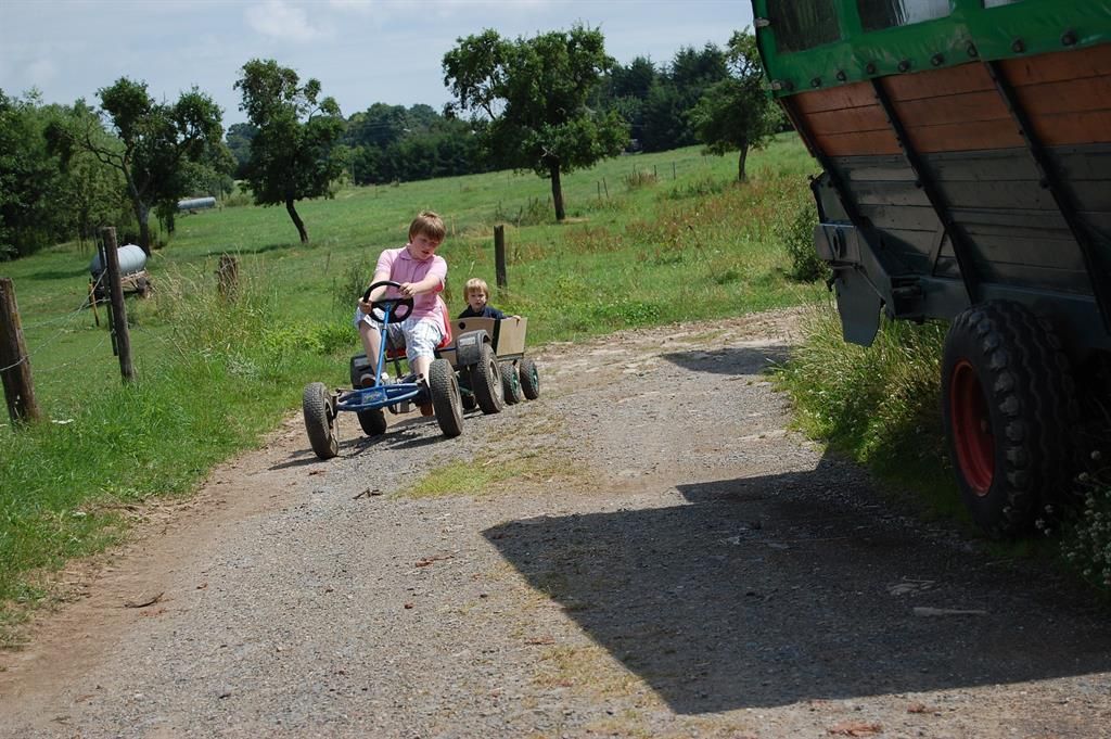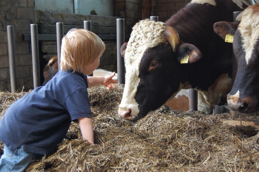 Zum Ferienhof gehört ein voll bewirtschafteter Bauernhof mit Kühen, Ponys und Katzen in 150 m Entfernung. Hier können Sie hautnah beim Melken zusehen und mithelfen oder mit dem Traktor mitfahren.