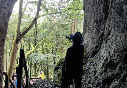 Steinig und steil scheint der Krimisteig, doch durch eine gehörige Portion schwarzem Humor beflügelt, scheint der Anstieg nahezu mühelos. Es geht rauf auf die Dolomitfelsen, dem Wahrzeichen von Gerolstein.
