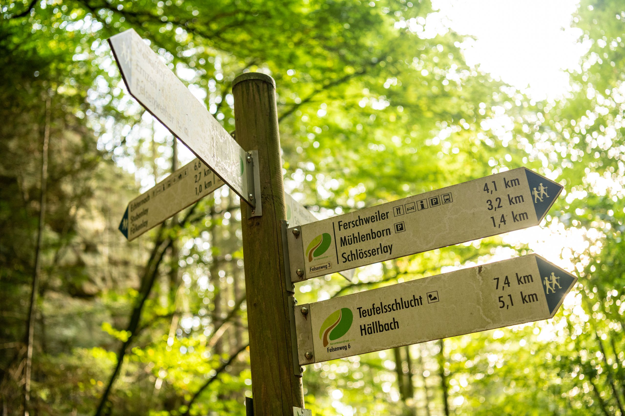 Insgesamt 23 perfekt ausgeschilderte Rundtouren in Premiumqualiät - neun davon grenzüberschreitend: Das ist der Naturwanderpark delux. Zwölf dieser Touren, die Ihnen unvergessliche Eindrücke der Landschaft vermitteln, befinden sich im Felsenland Südeifel (siehe unten).